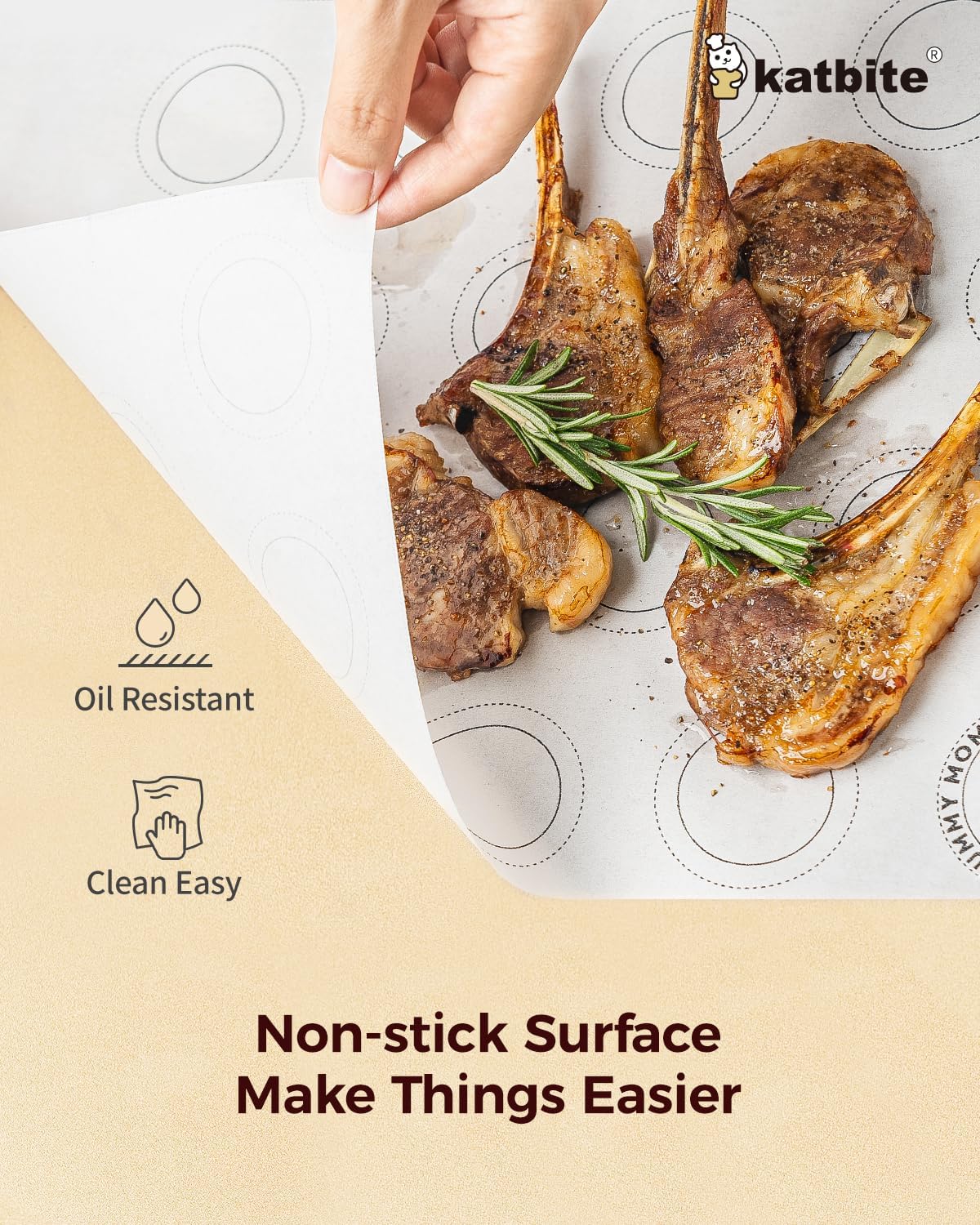 - Macaron Parchment Paper Sheets: Each exquisite box includes 100 pre-cut printed parchment sheets (12x16 inches) with a macaron template. Featuring 20 circle parchment designs per sheet, including a distinctive "Katbite" logo, enhance your macaron making with unique branding!