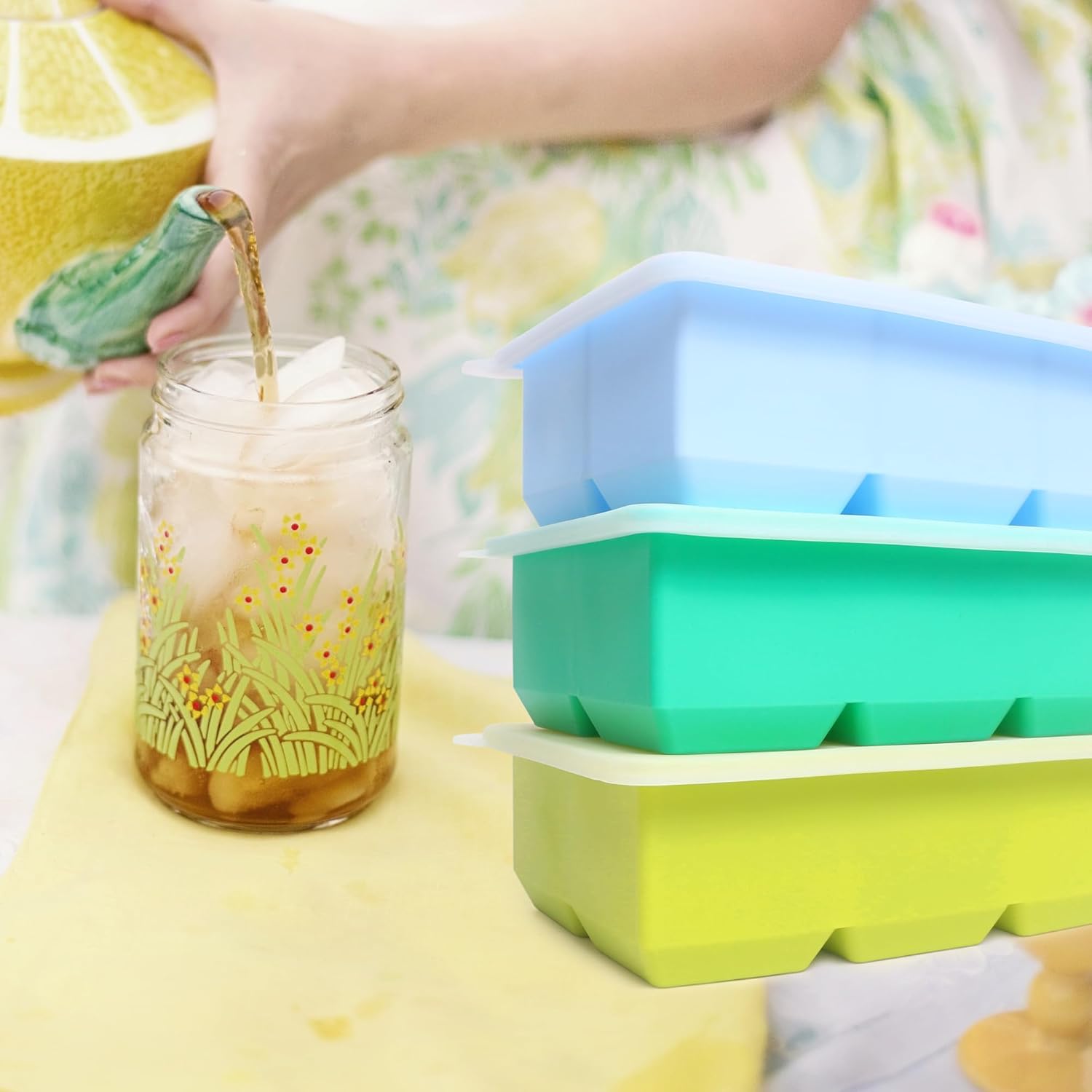 - Simple Non-stick Design–Compared to the stiff plastic ice trays, our flexible ice trays are made of durable silicone. These large ice cube molds can be easily twisted or pushed from the bottom to remove ice cubes.