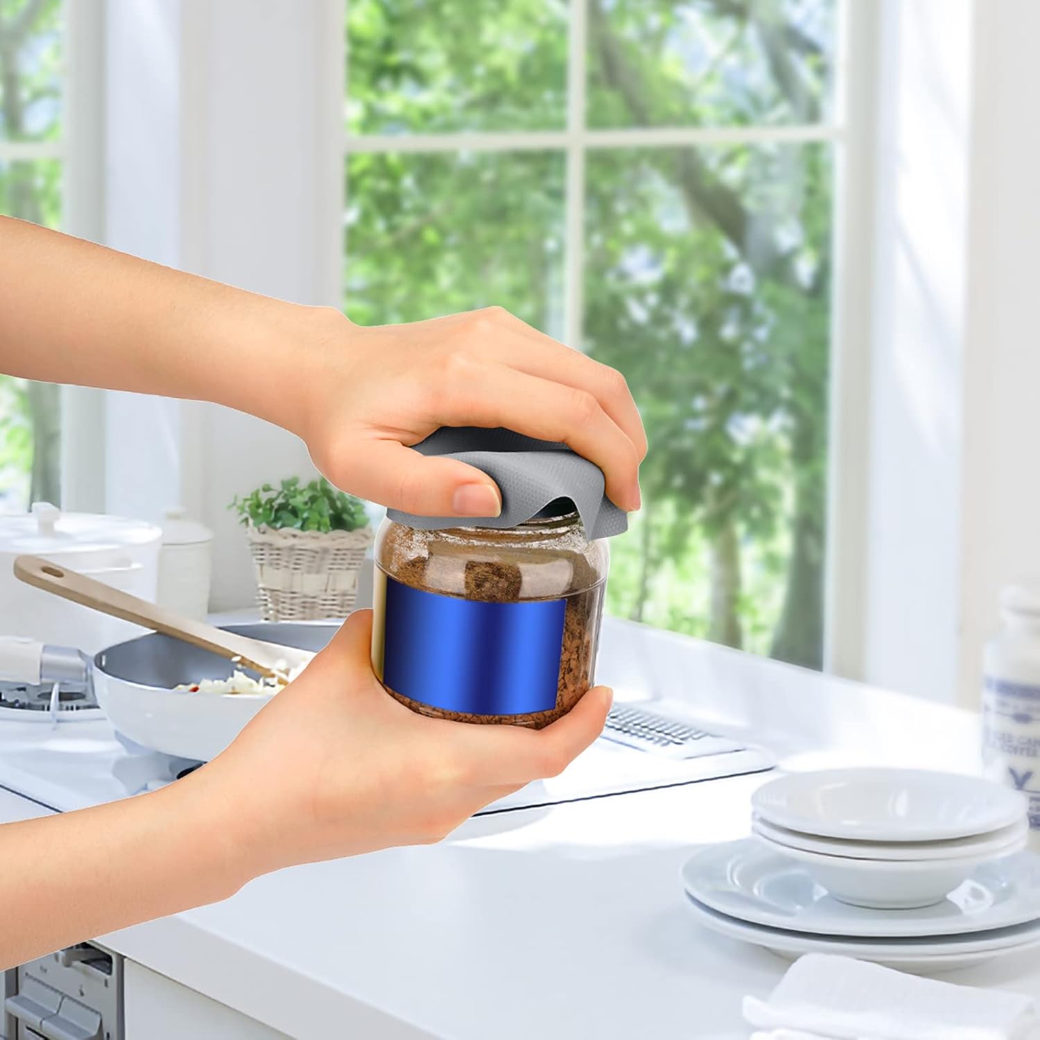 - Good Helper: Measures approx. 4.8"x4.8", suitable for most jars and bottles. Our jar opener features textured surface that creates more friction with the jar's lid, providing excellent friction for opening the jar.