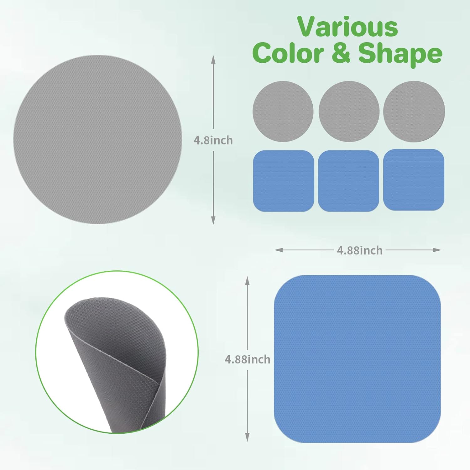 - Package Includes: You will receive 6pcs jar opener gripper pads in 2 shapes(round & square) & 2 colors(Gray & Blue). These rubber gripper pads are soft & thin, easy to open the lids without extra jar opener.