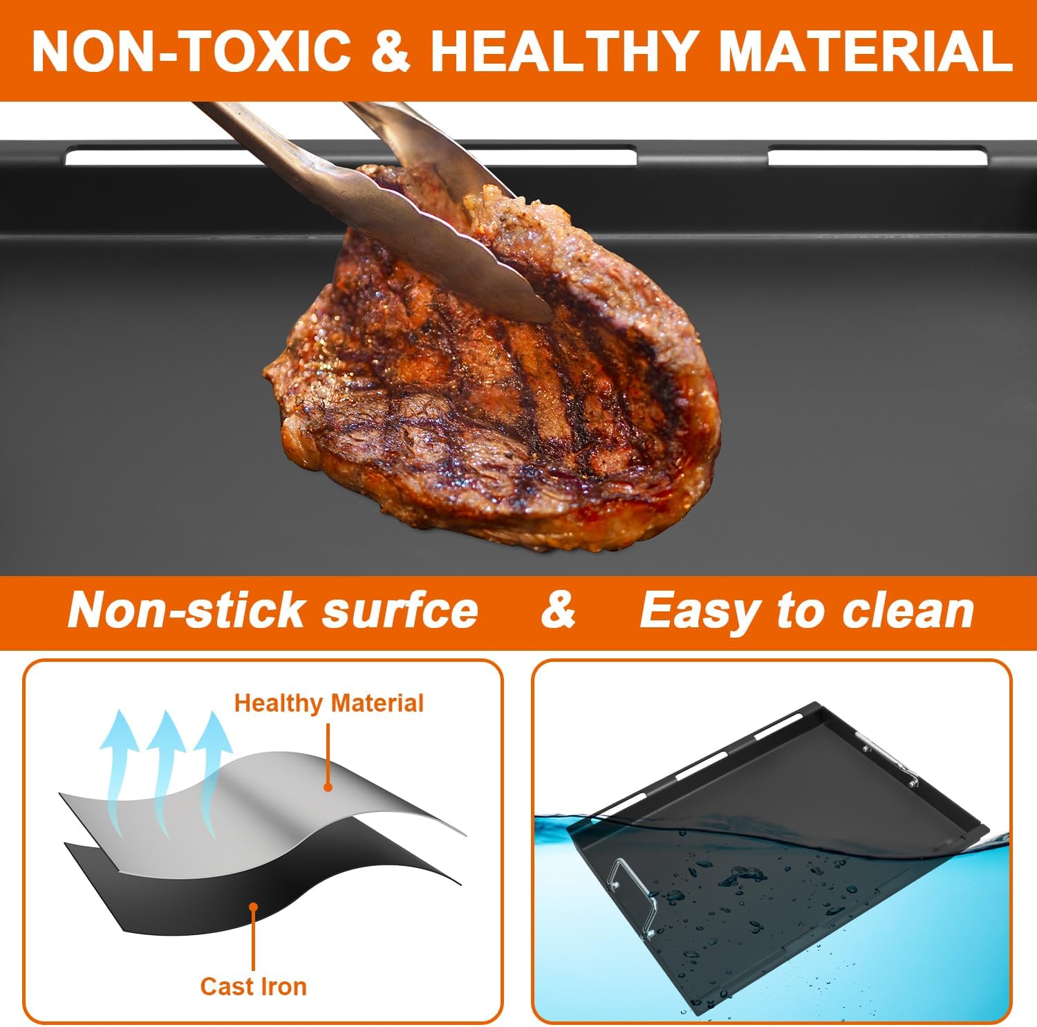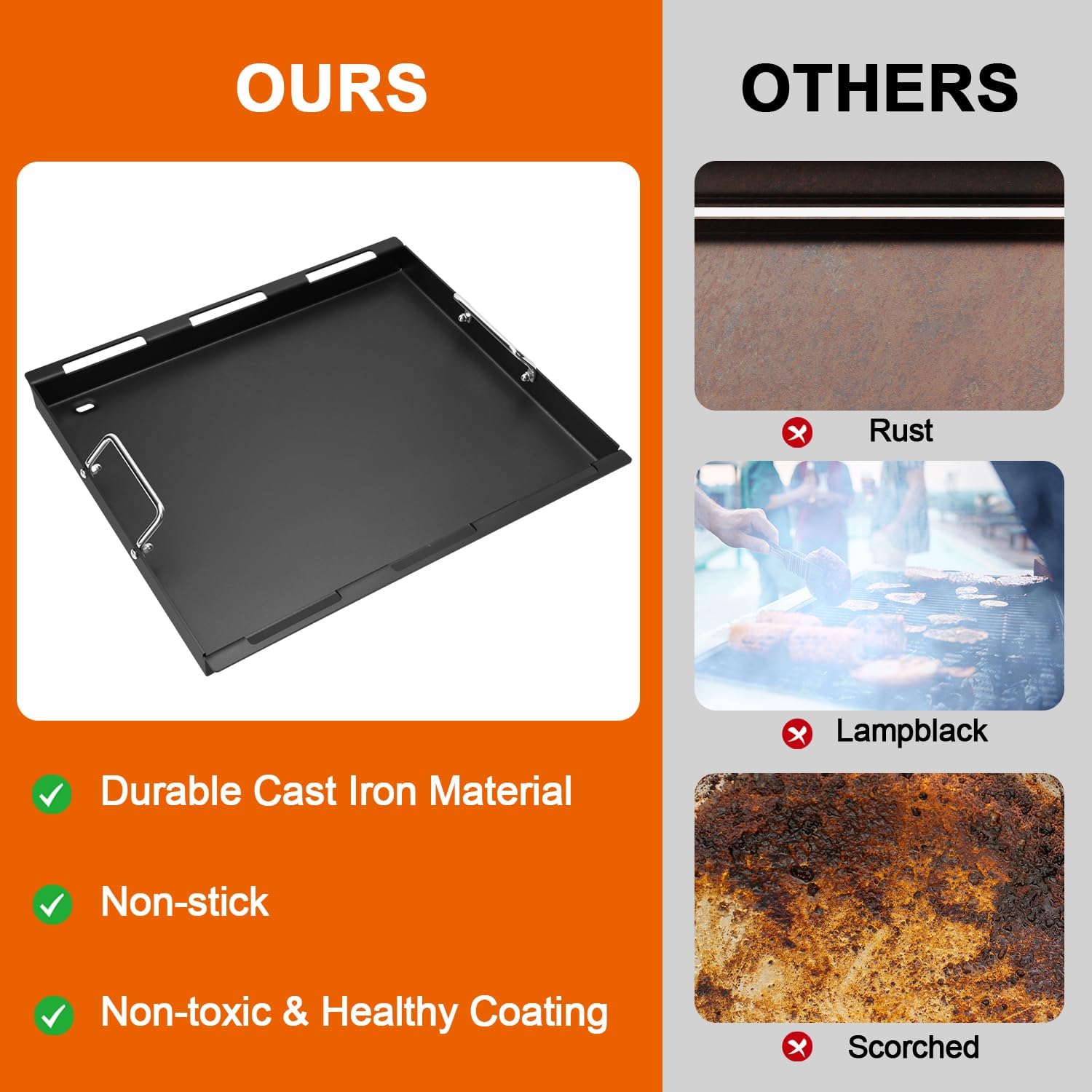- 【Convenience & Versatility】The handles are handy for moving the griddle. The large surface area makes it ideal for cooking multiple items at once. Whether you're cooking for a family gathering or a party with friends, this griddle has you covered.
