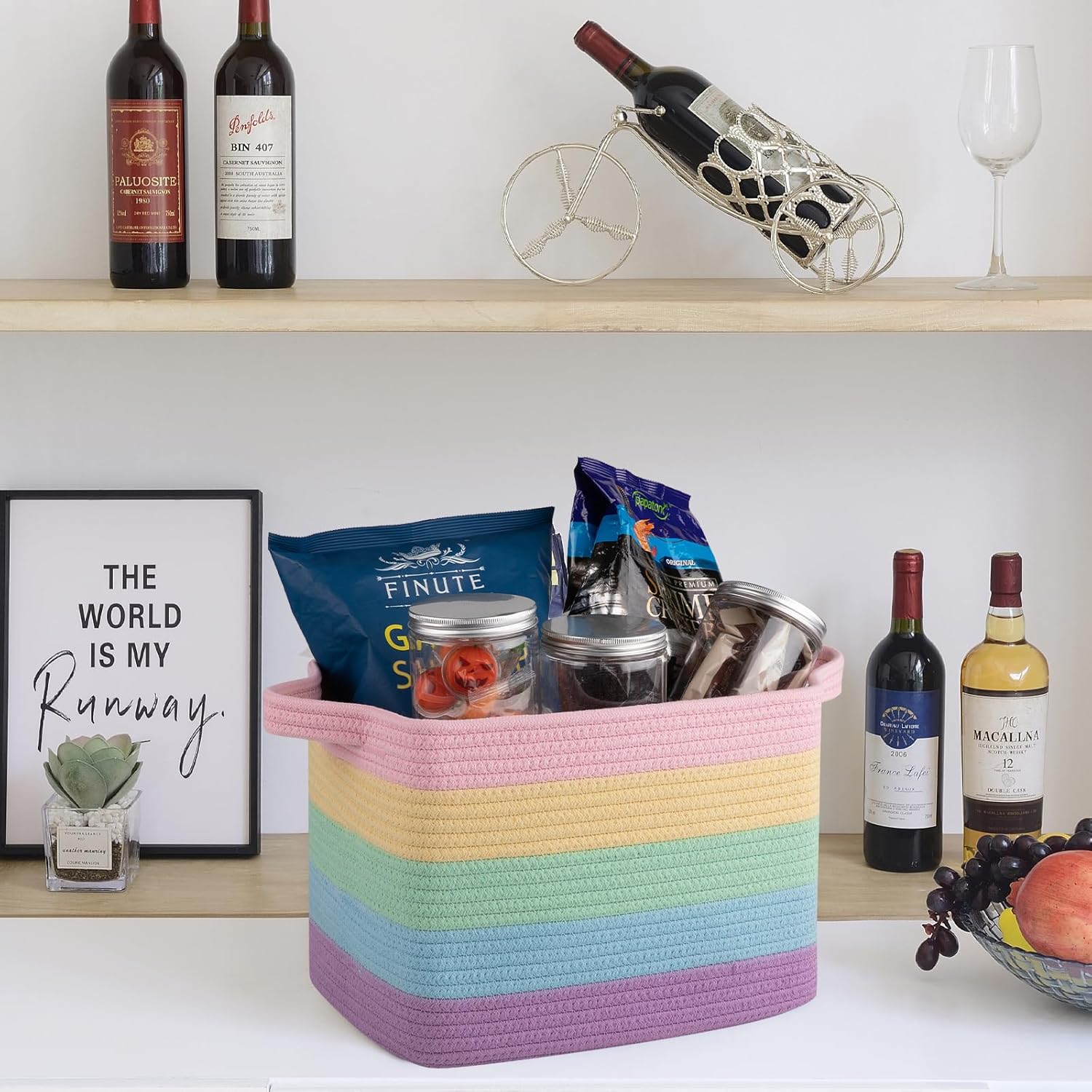 - Unique Design:Small rope basket with foldable design and separate built-In handles for easy portability and store. The handle is made of 3-heeled braided rope, comfortable to the touch, even with heavy items your hand is not restrained.In addition the storage basket available in different unique colors. Provide a nice fine Nordic touch to any room of your house