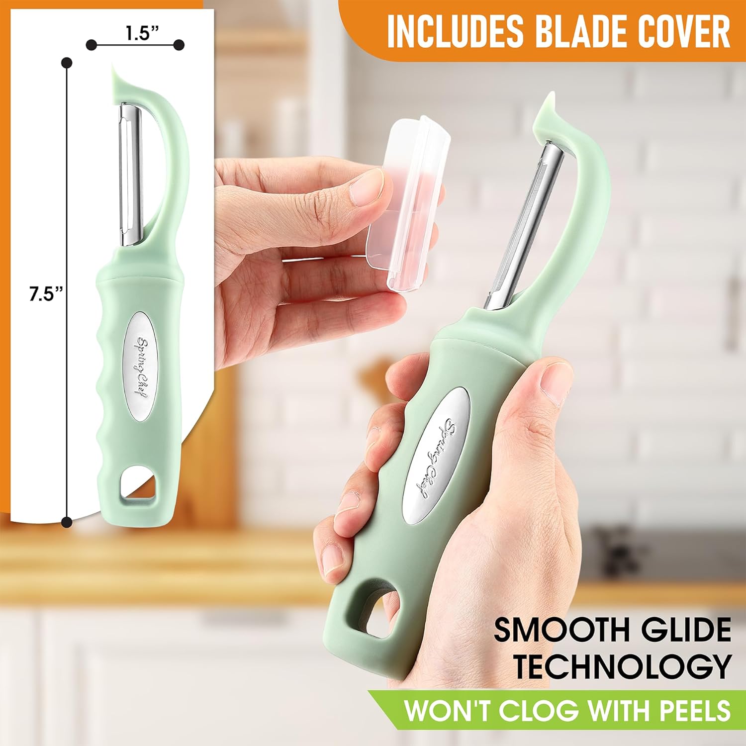 Spring Chef Premium Swivel Vegetable Peeler, Comfortable Handle and Ultra Sharp Stainless Steel Blades - Perfect Kitchen Peeler For Veggie, Fruit, Potato, Carrot, Apple - Pistachio