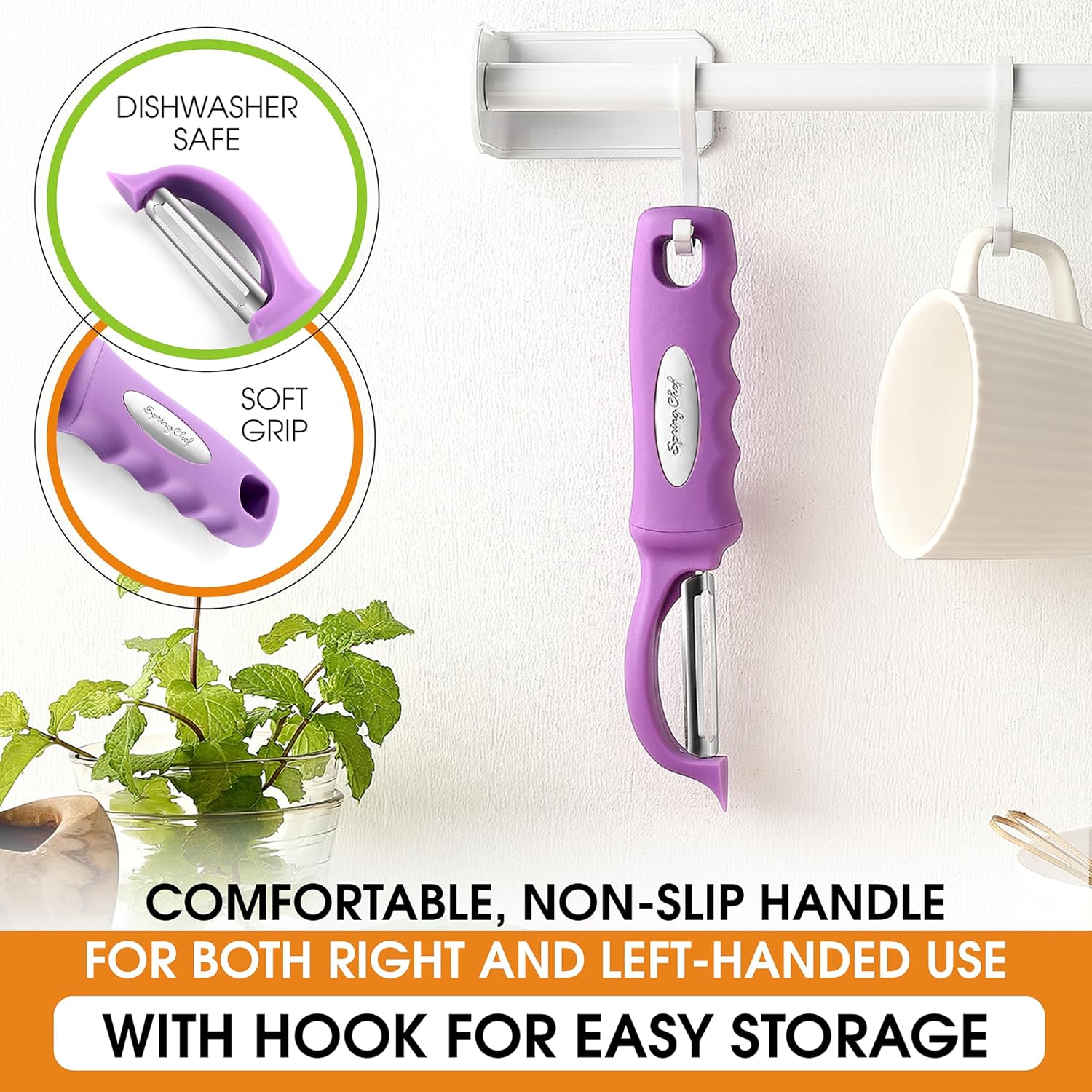 - Comfortable Handle For Maximum Comfort - The handle is comfortable for both right and left-handed use and makes peeling enjoyable. Includes hole for easy hanging.