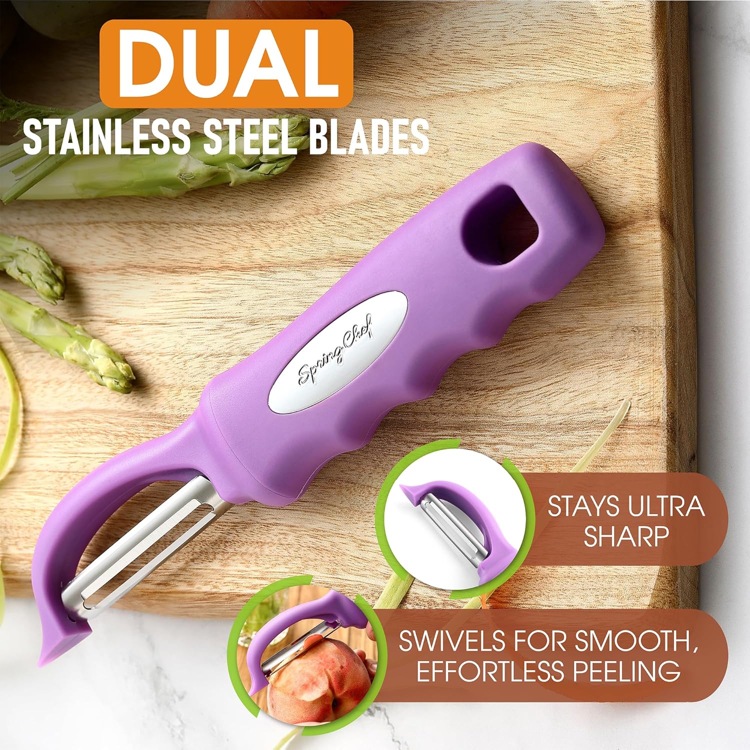 Spring Chef Premium Swivel Vegetable Peeler, Comfortable Handle and Ultra Sharp Stainless Steel Blades - Perfect Kitchen Peeler For Veggie, Fruit, Potato, Carrot, Apple - Orchid