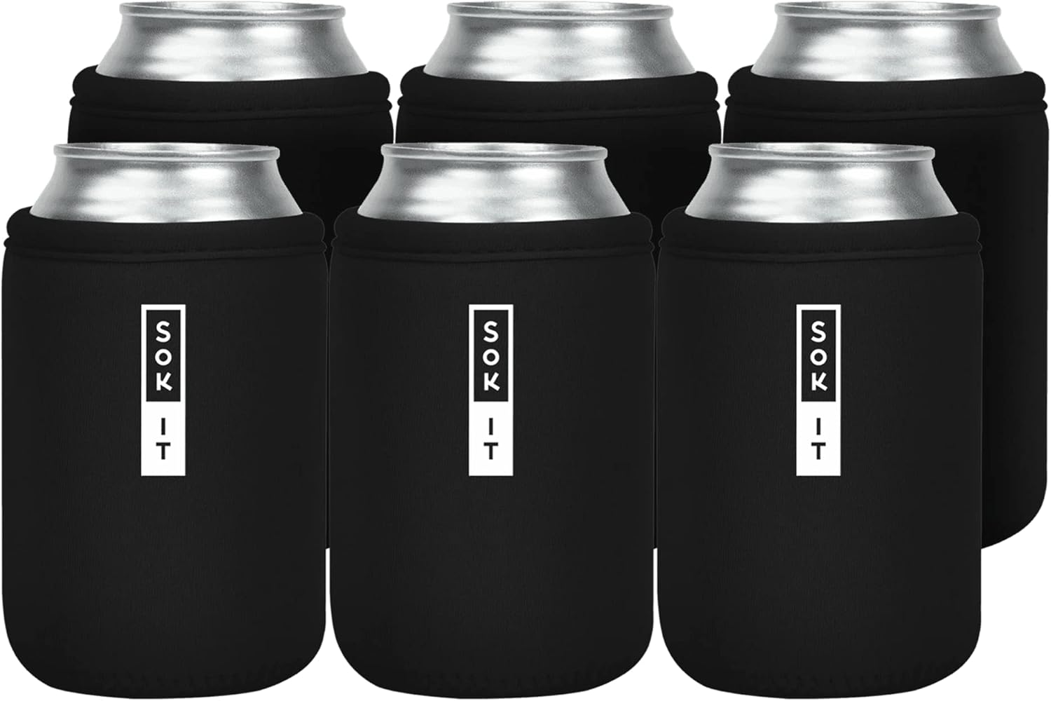 Sok It CanSok 6 Pack Sleeve for Beer & Soda Insulated Neoprene Cover (Black, 12oz Can Sleeve - 6 Pack)