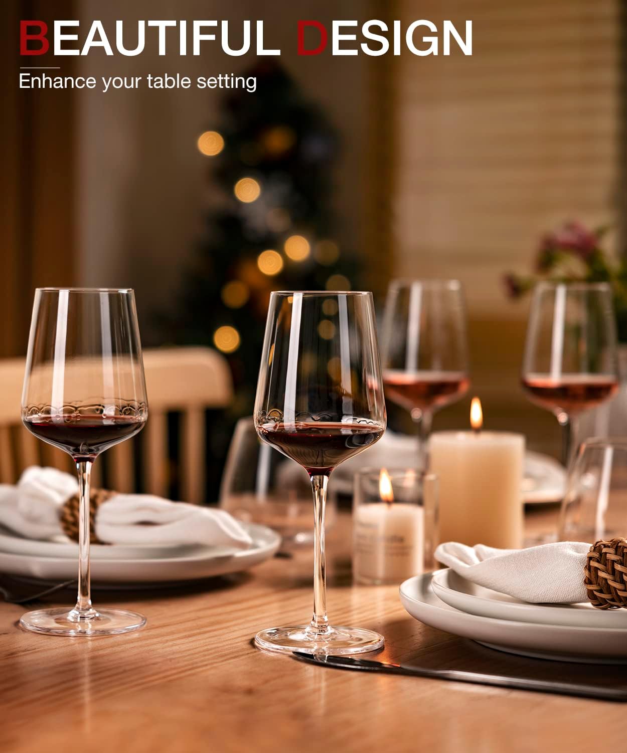 - BEAUTIFUL DESIGN: Wine glasses set of 4 designed with beauty in mind, adding a touch of sophistication to your table setting. wine glasses set of 4 sure to impress your guests and make your party a memorable one