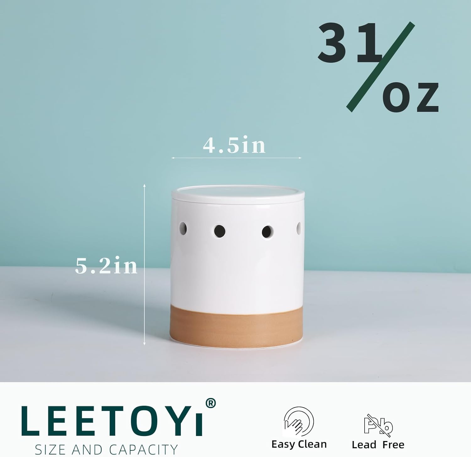 LEETOYI Garlic Keeper with Lid, Garlic Holder Storage Container, Ceramic Garlic Container for Countertop, Garlic Saver to Keep Your Garlic Cloves Fresh Longer, Easy to Clean