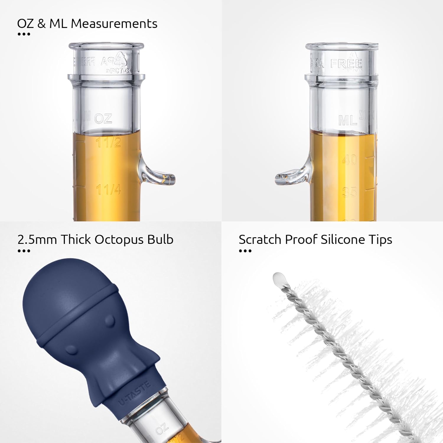 U-Taste 1.5oz Angled Turkey Baster - 228.2ºF Heat Resistant Food Grade Tritan and Silicone Large Octopus Bulb Baster Set with Cleaning Brush for Cooking Basting Meat Poultry Chicken (Midnight Blue)