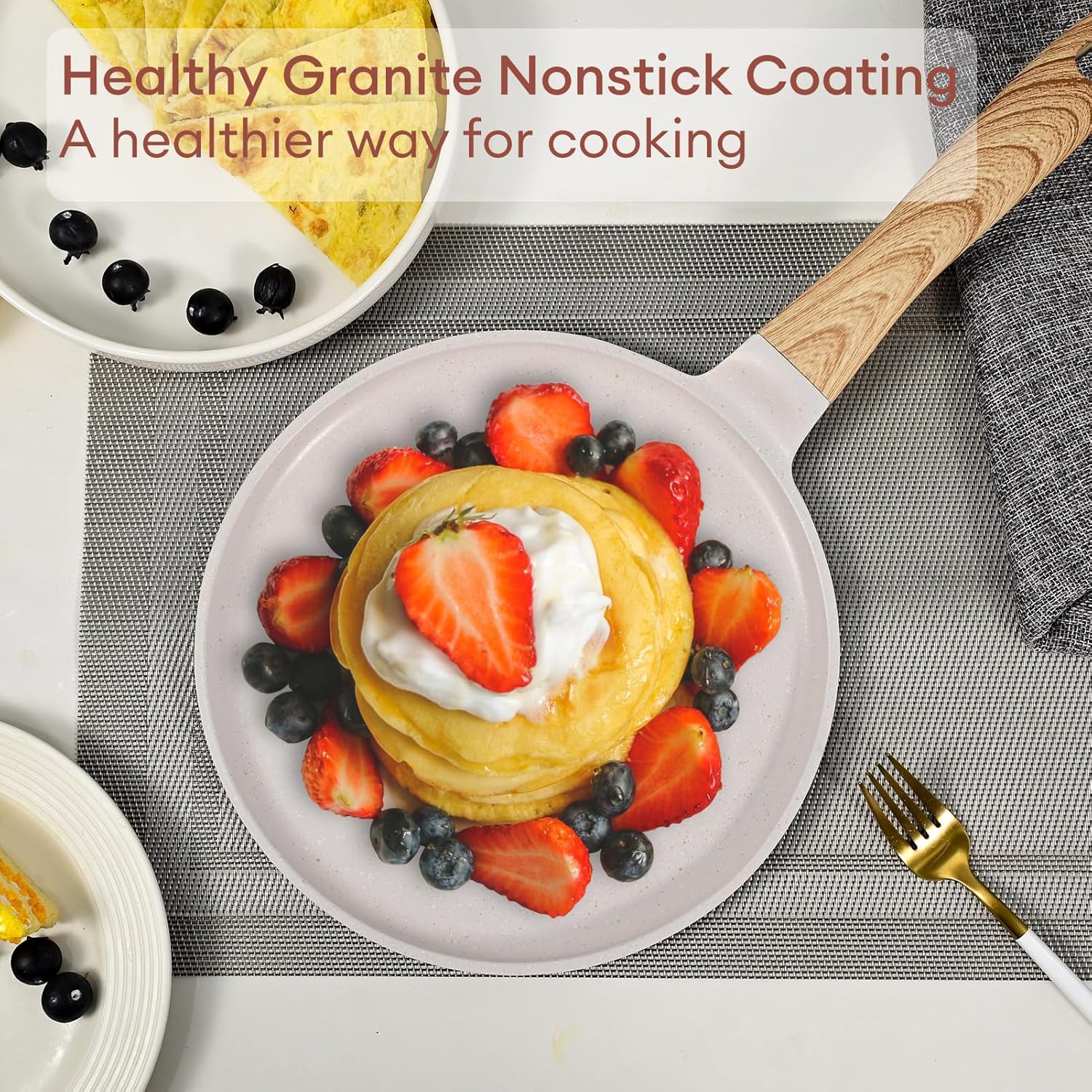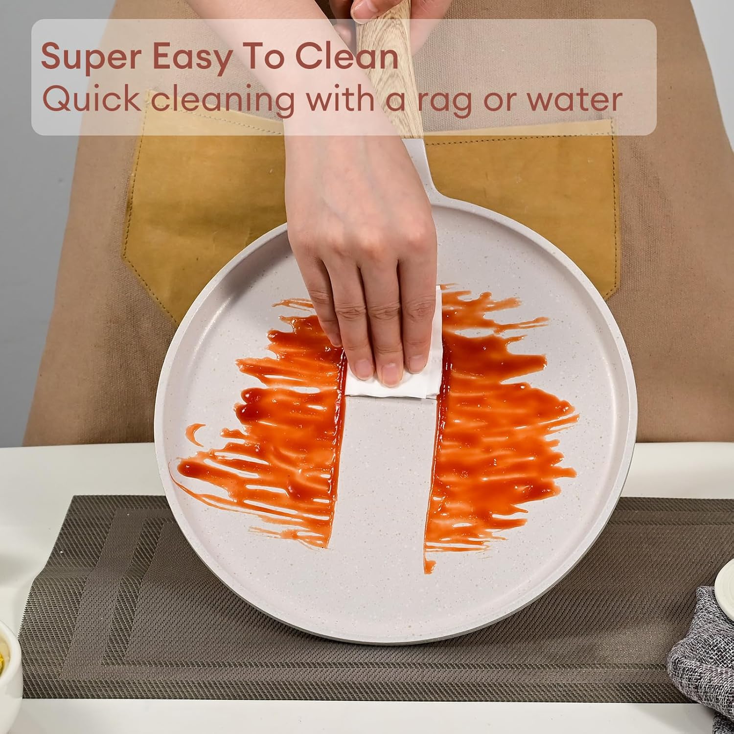 JEETEE Crepe Pan Nonstick, 11 inch Comales Para Tortillas Griddle Pan for Stove Top, Granite Coating Flat Pancake Pan Dosa Tawa, PFOA FREE and Induction Compatible (Beige)