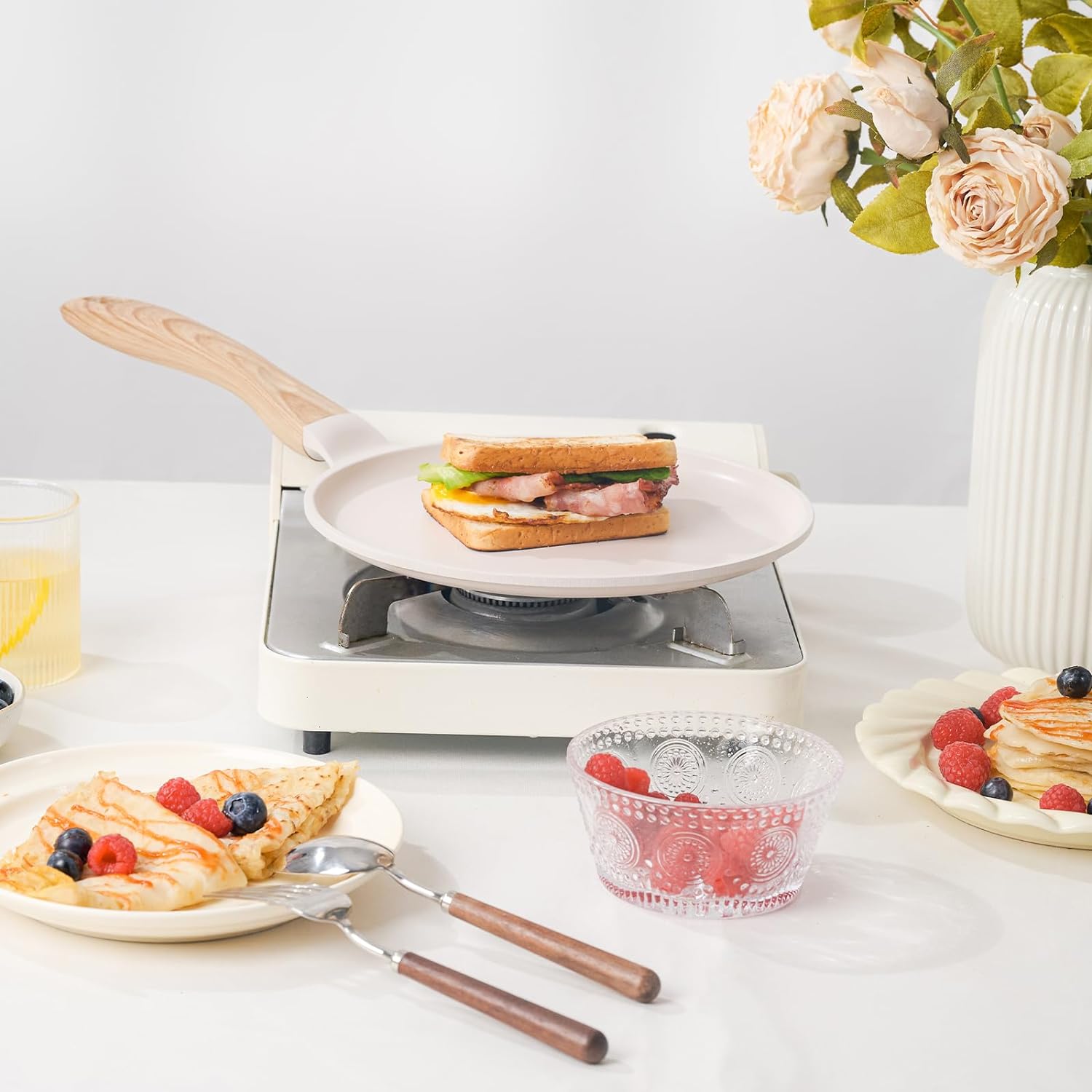 JEETEE Crepe Pan Nonstick, 9.5 inch Comales Para Tortillas Griddle Pan for Stove Top, Granite Coating Flat Pancake Pan Dosa Tawa, PFOA FREE and Induction Compatible (Beige)