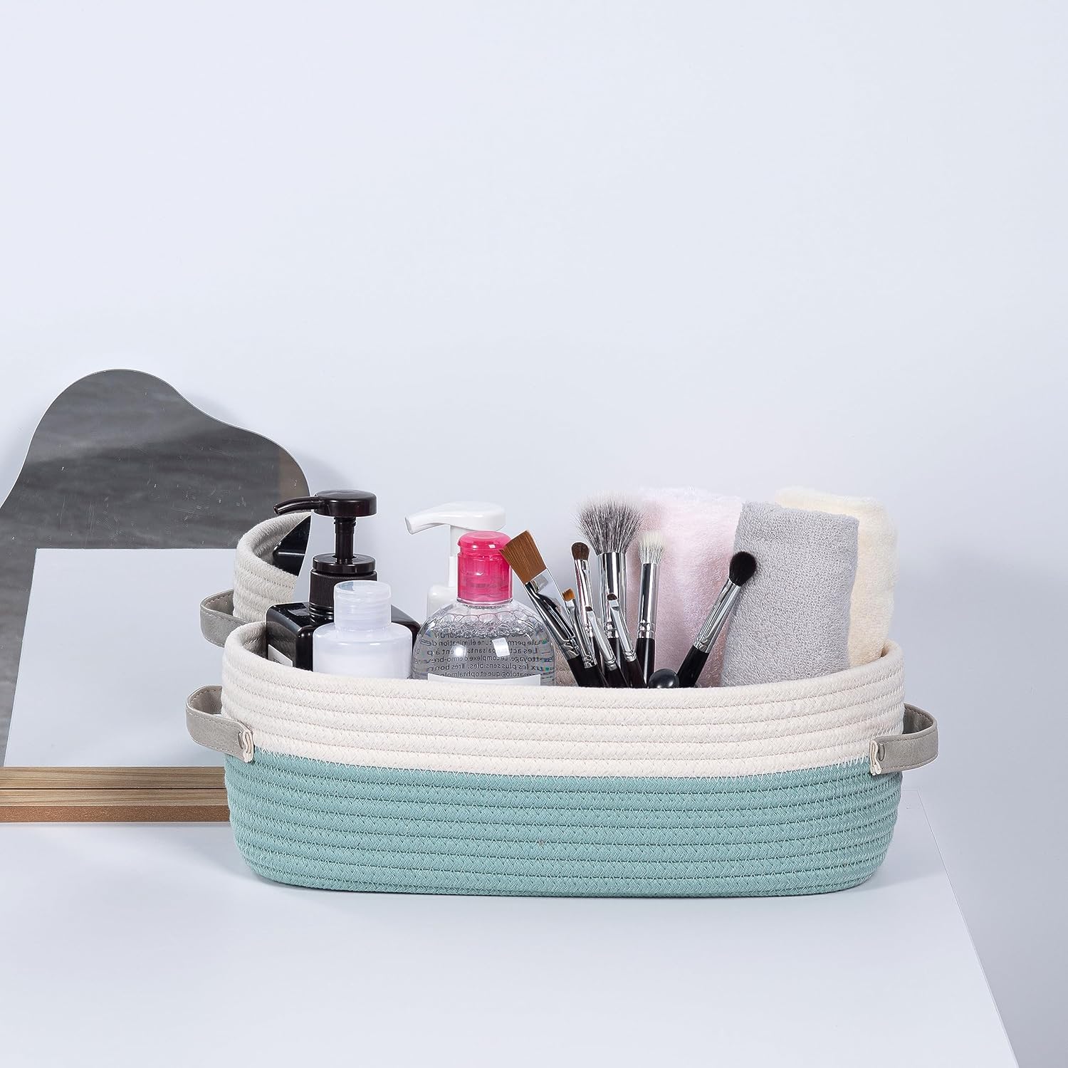 Cotton Rope Woven Toilet Paper Baskets for Organizing Decorative for Boho Decor Small Storage Gift 13"x5.9"x4" Mint Green