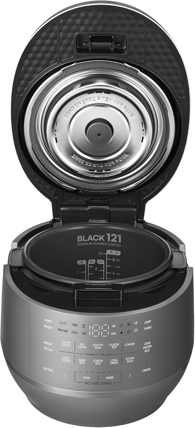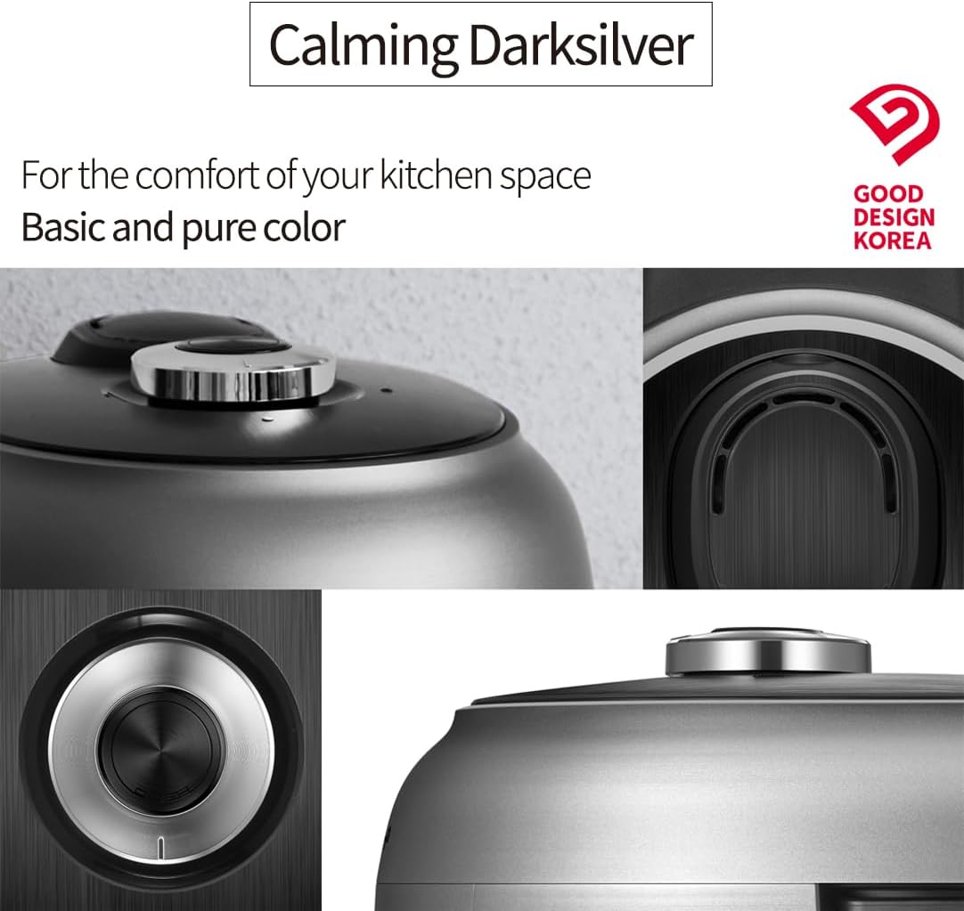 CRT-RPK0641MUS | 2.1 Ultra High-Pressure Induction Heating Rice Cooker 6 Cup (Uncooked) (1.14 quarts): 6 person serving / per use| Full Stainless Power Lock System | Auto Steam Clean | Voice Guide | Made in Korea | Dark Silver