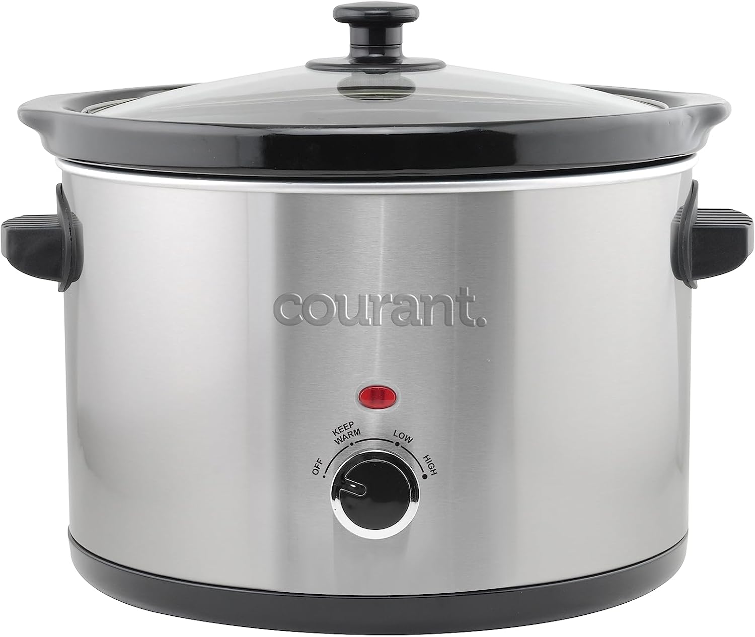 Courant Slow Cooker 5.5 Quart Crock, with Easy Cooking Options, Dishwasher Safe Pot and Glass Lid, Stainless Steel