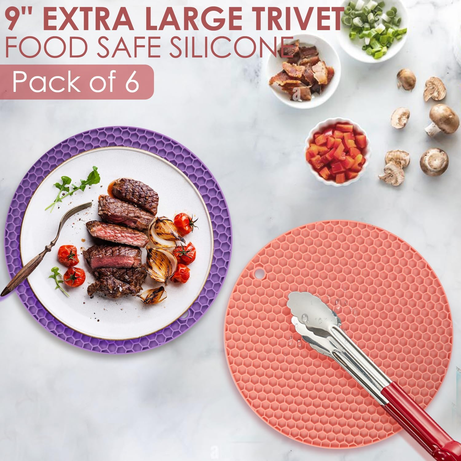 - 🥘Silicone Multipurpose Silicone Mat-The 9 inch silicone trivets for hot pots and pans work as oven mitts, chocolate chips mold, pot and pan protectors, drying mat, coaster, stuck jar lid opener, frisbee and many more uses. Also get these for your mom or dad as gifts.