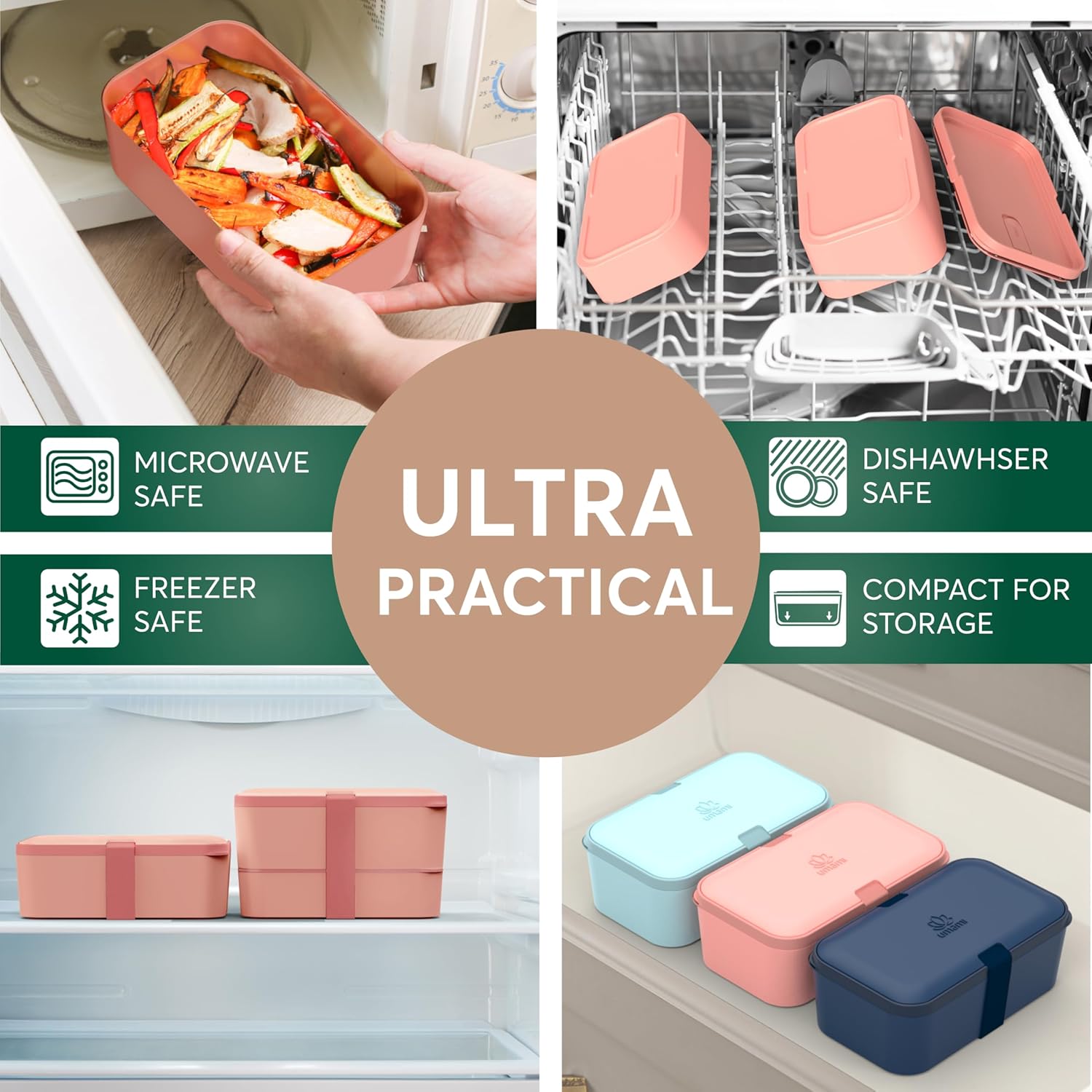 - Leakproof design - No more worrying about spills or leaks in your bag. The silicone seal means our adult bento box keeps your food secure all day.
