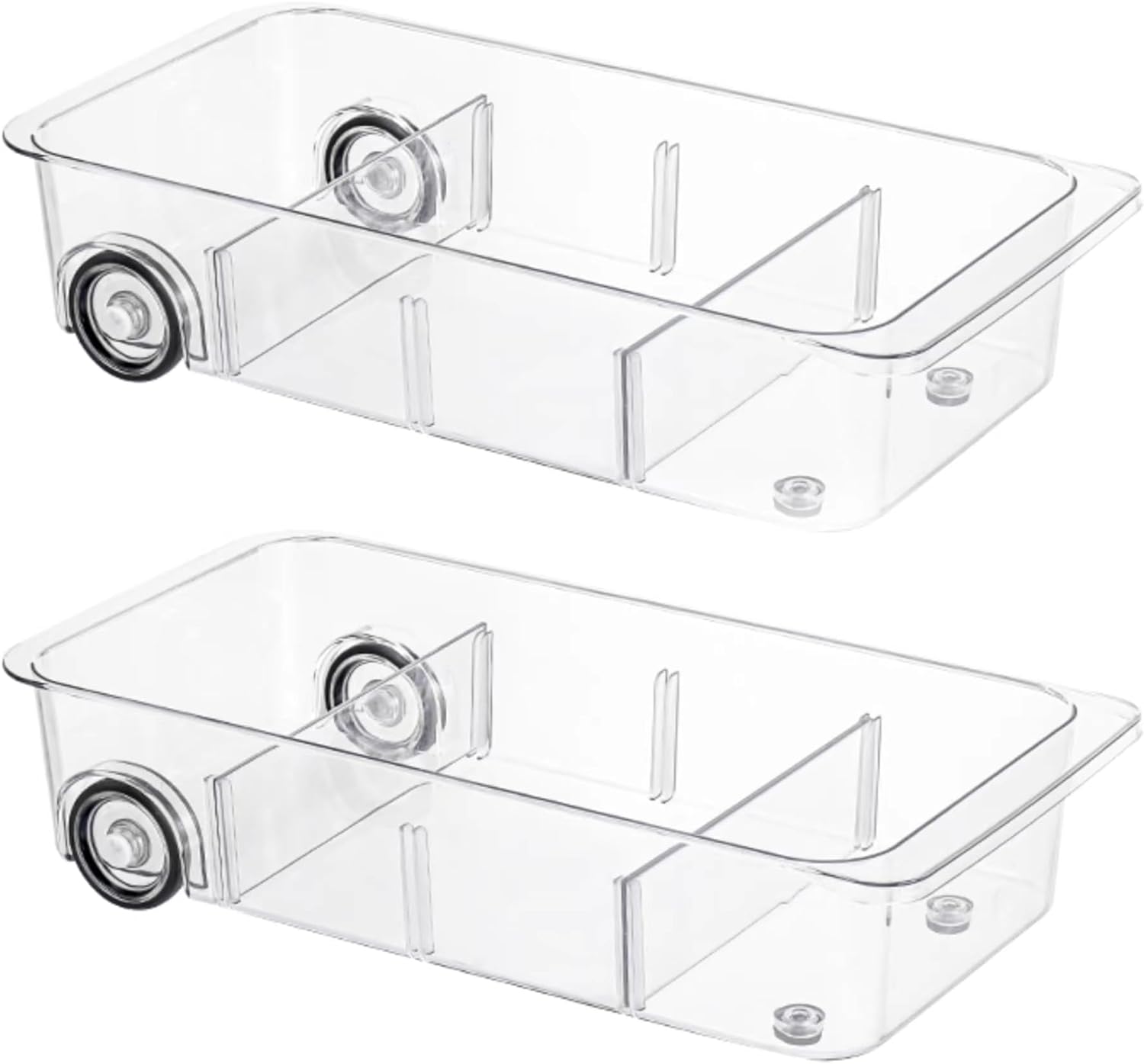 Attelite RollOut Refrigerator Drawer Organizer and Storage Clear Design with Dividers, Fridge Organizer on Wheels, Upgrade Thick Plastic Pantry Storage Bins, Kitchen Organization 2 Set