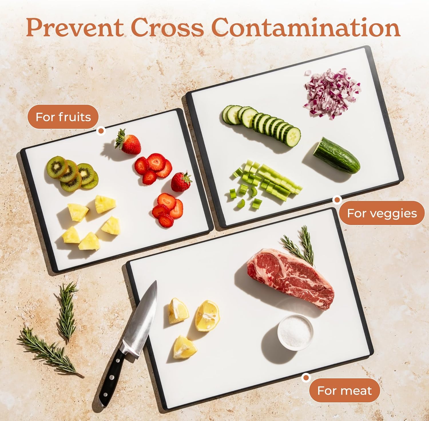 SMIRLY Plastic Cutting Board Set 3 Pieces, Non-Slip Dishwasher Safe Chopping Boards for Kitchen, Black & White