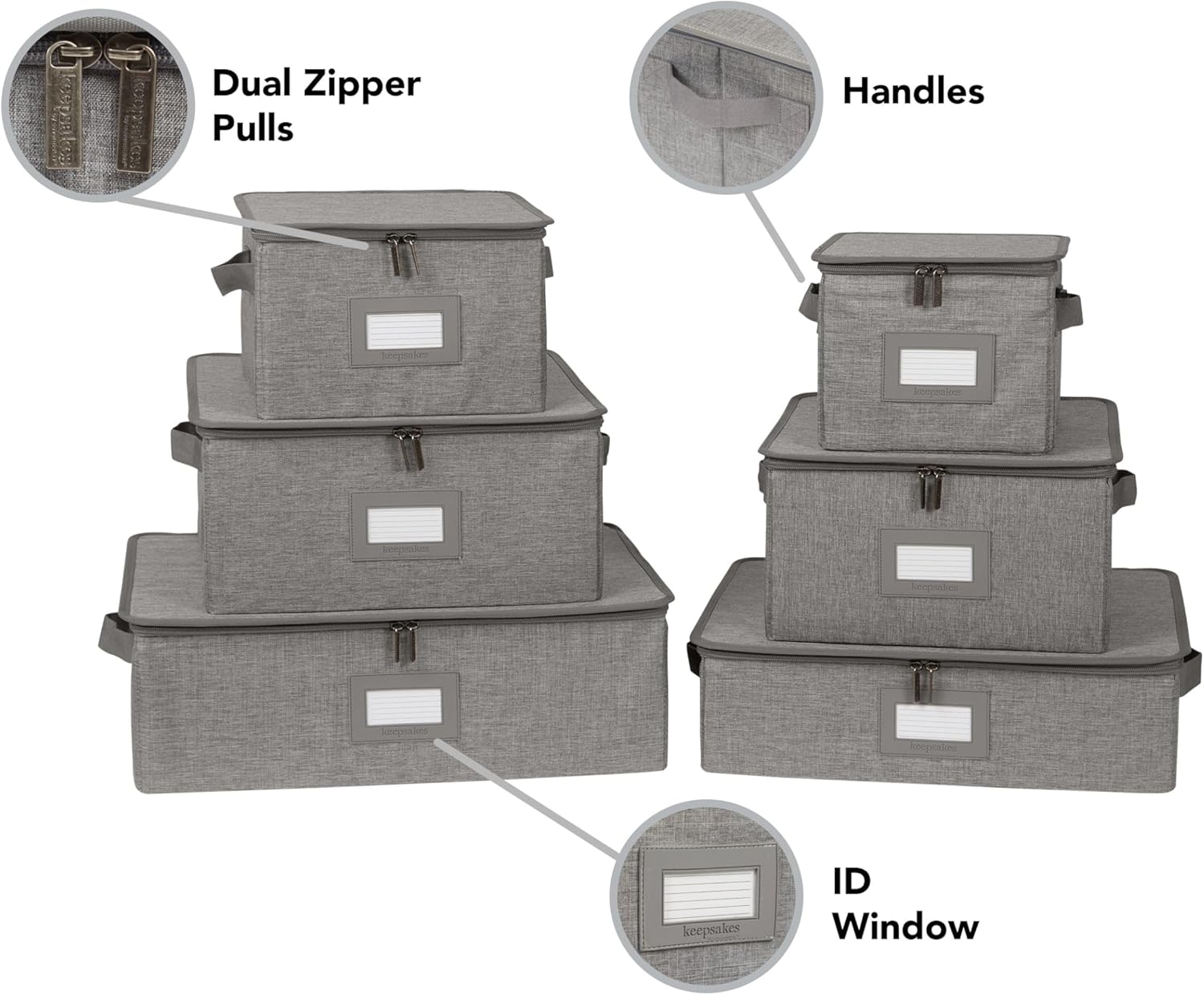 Covermates Keepsakes Dish Storage Box - Stackable, Reinforced Handles, China Storage, Grey Heather