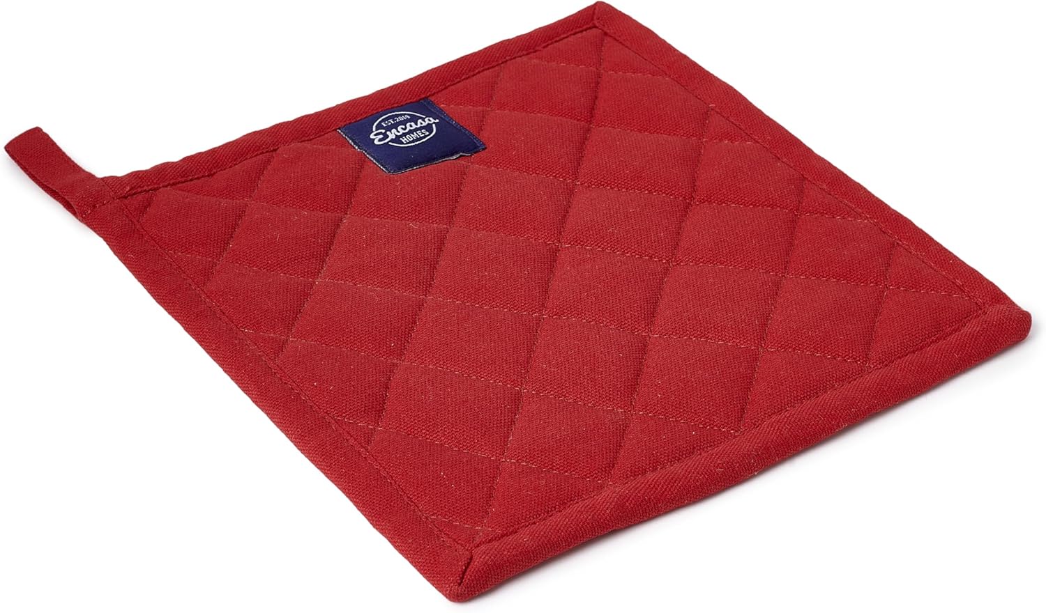 Encasa XO Heat Resistant Cotton Pot Holders with Hanging Loop - Set of 2 - Red - Multipurpose Quilted Everyday Hot Pad for Kitchen, Camping, BBQ & Microwave - 8x8 in