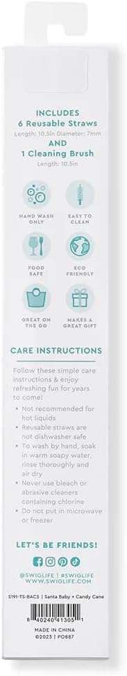 Swig Life Reusable Straws Santa Baby & Candy Cane Tall Straw Set & Cleaning Brush, Each Straw is 10.25 inch Long (Fits Swig Life 20oz Tumblers, 22oz, and 32oz Tumblers)
