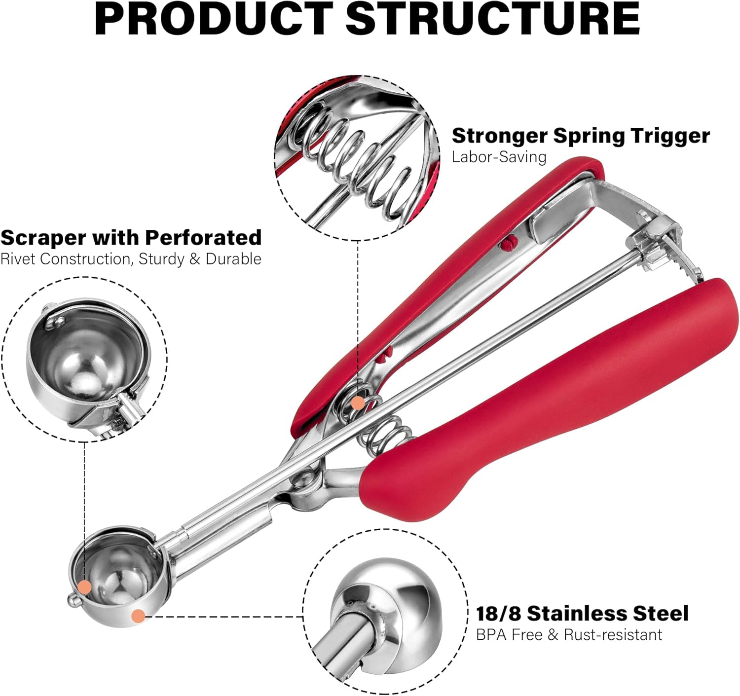 - 🍧【Our Ice Cream Scoop is Ready For All Your Daily Needs】 If you are planning to make delicious cookies, this small cookie scoop will fulfil your desire! It is also a great choice that can be used as an ice cream scoop, melon baller scoop, cupcake scoop, meatball scoop, or even as a measuring spoon. With this multifunctional scoop, let your meal prep work can be done efficiently. Ideal for use at home, restaurants, dessert shops and ice cream parlours.