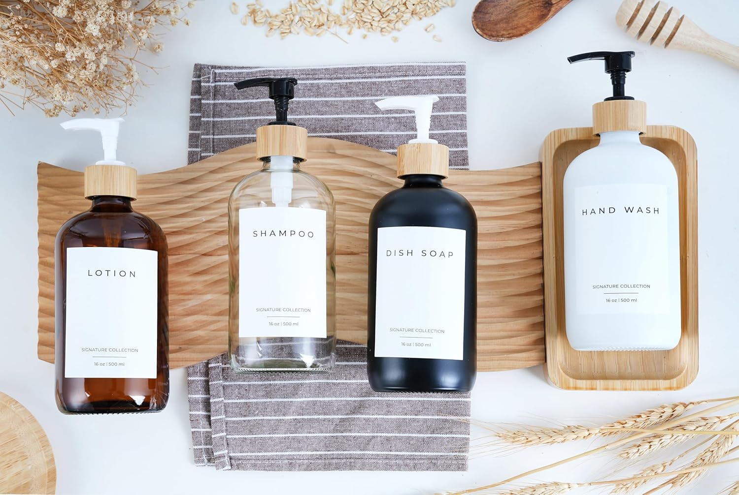 - ✅ 2-in-1 COMBO: Upgrade your home with our glass soap dispenser set. The dish soap dispensers are crafted from the highest quality glass and can be used as soap dispensers for kitchen sinks, soap dispensers for bathrooms, or as hand soap dispenser of your favorite liquid. The kitchen soap dispensers come with 2 dish soap dispensers for kitchen bottles (16 ounces), 2 stainless steel pumps, and 5 waterproof labels. Our selection includes colors including amber, clear, white, and black.
