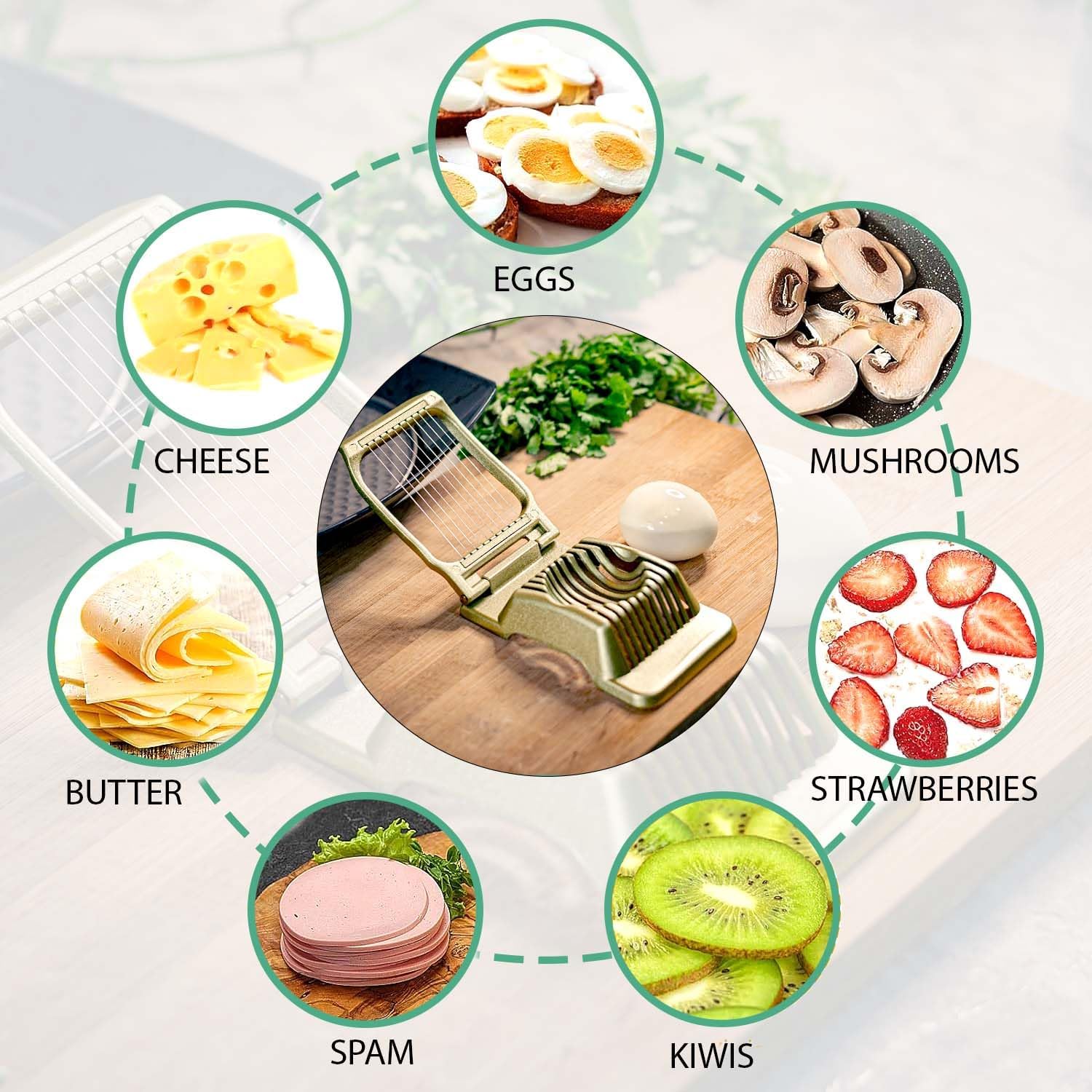 Zoe's Kitchen Good Grip Egg Slicer for Hard Boiled Eggs Heavy Duty Professional Large Aluminum Egg Slicer with Stainless Steel Wires Kitchen Aid Egg, Strawberry Slicer Hard Boiled Egg Cutter (Golden)