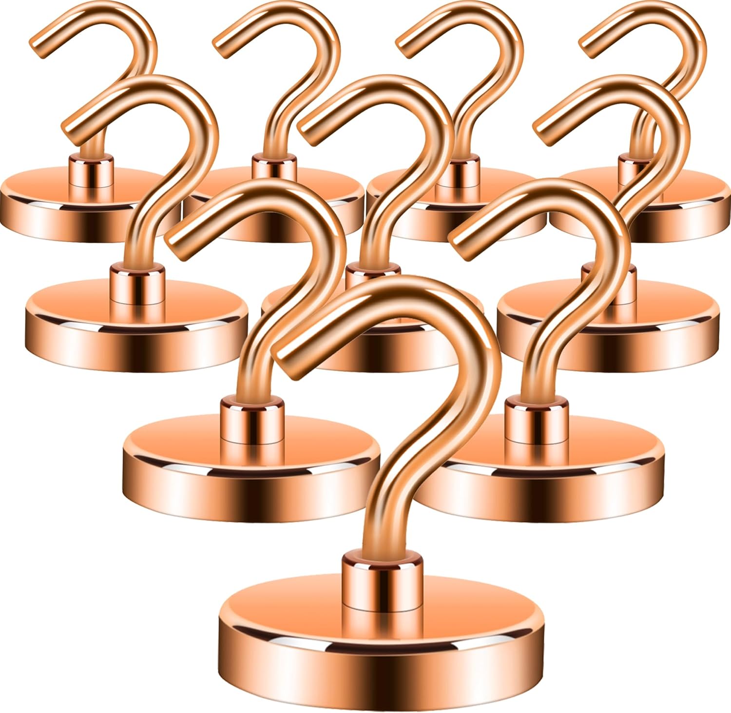 Neosmuk Magnetic Hooks Heavy Duty,Strong Magnet with Hook for Fridge, Super Neodymium Extra Strength Industrial Hooks for Hanging, Magnetic Hanger for Toolbox, Cruise, Grill(Bronze,10 Pack)