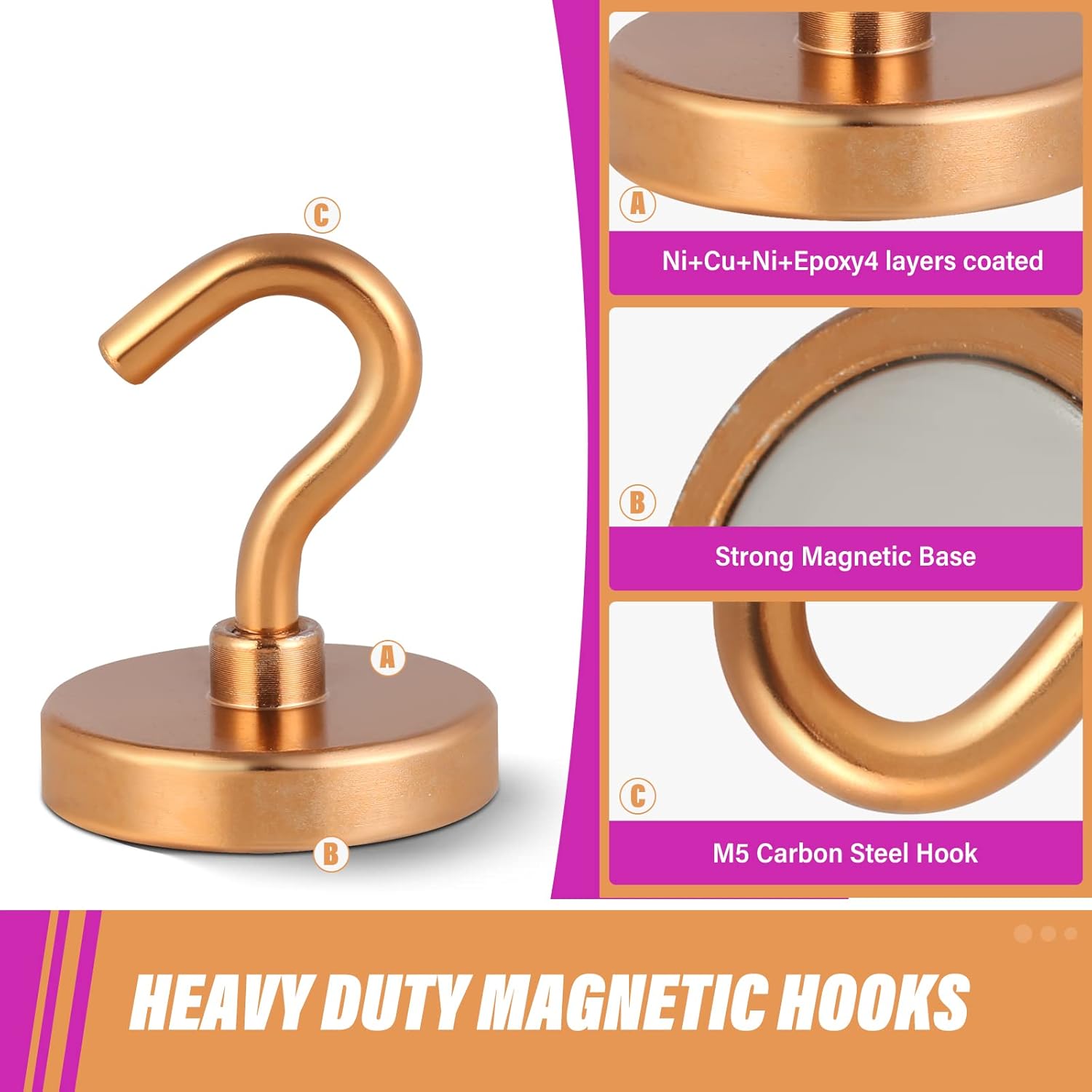 - ✔ HIGH-LEVEL PLATING- We offer 4 layers of coating on the magnet hook metal base, metal hook, and magnet. It provides this magnetic hanger with a shiny and rust-free finish. Coated magnetic hook particularly exhibits an excellent anti-corrosive properties and scratch resistance. Maintenance-free, no rust!