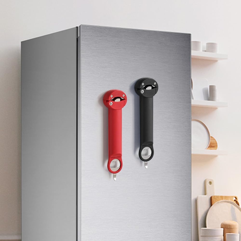 - Premium material & Easy to store: Can opener is made from grade stainless steel gears and Nylon handle. No corrosion or rusting. Non-mouldy, non-deformable, sturdy and durable. A fridge stickers you can use. Without taking too much space.