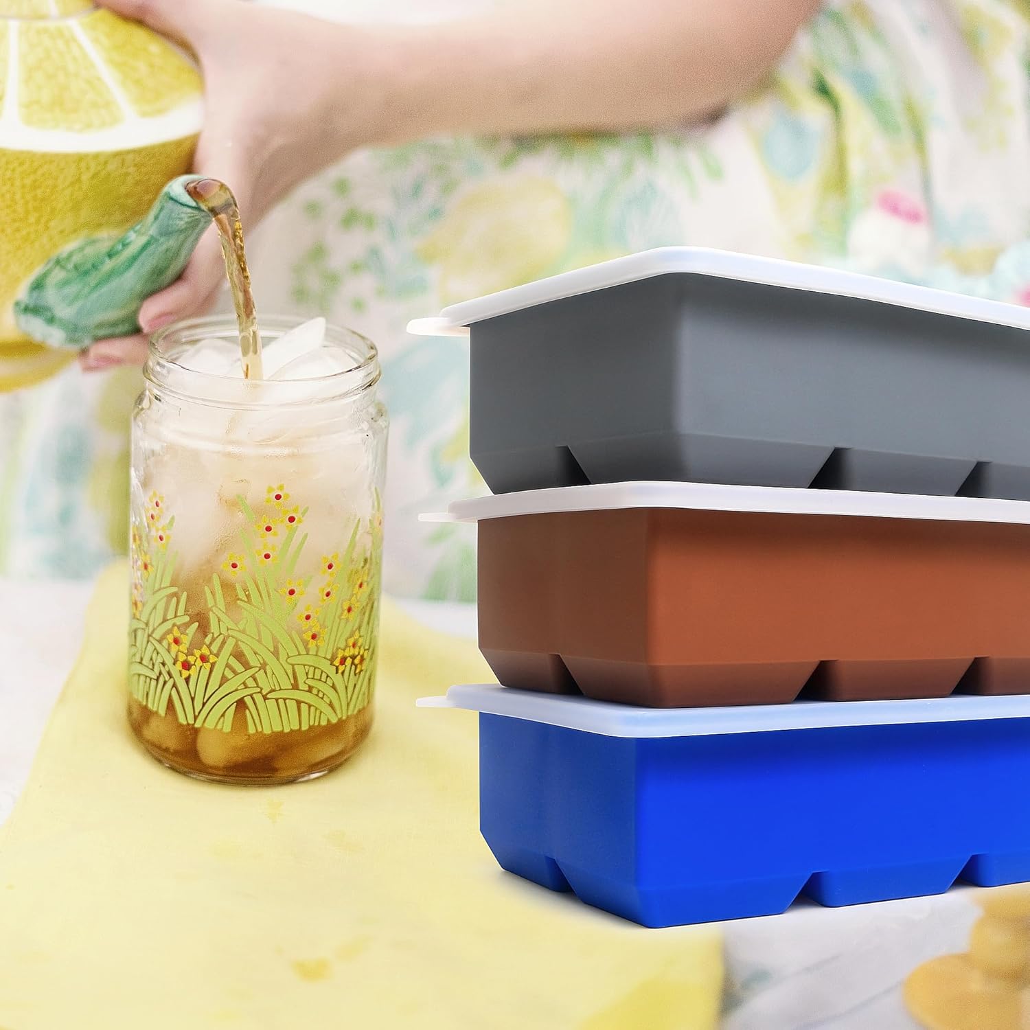 Silicone Ice Cube Trays 3 Pack - Large Size Silicone Ice Cube Molds with Leak Proof Removable Lid Square Ice Cube Tray And BPA Free for Cocktail,Whiskey, Stackable Flexible Ice