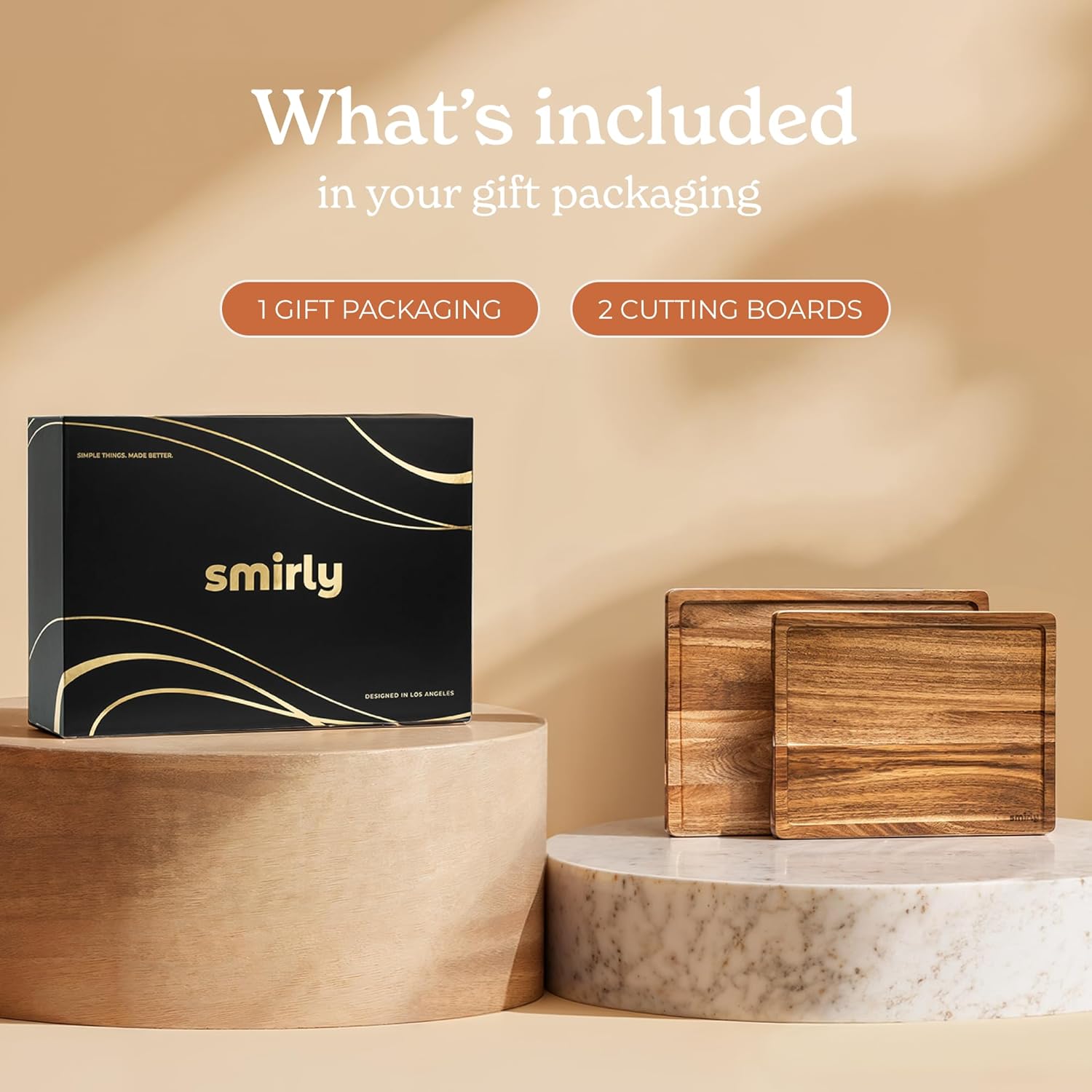 - 2-Pack for Versatile Prep - Our 2-pack cutting board set provides two different sizes, giving you the flexibility to tackle various kitchen tasks. Whether chopping vegetables or slicing meats, these durable acacia boards meet all your culinary needs.