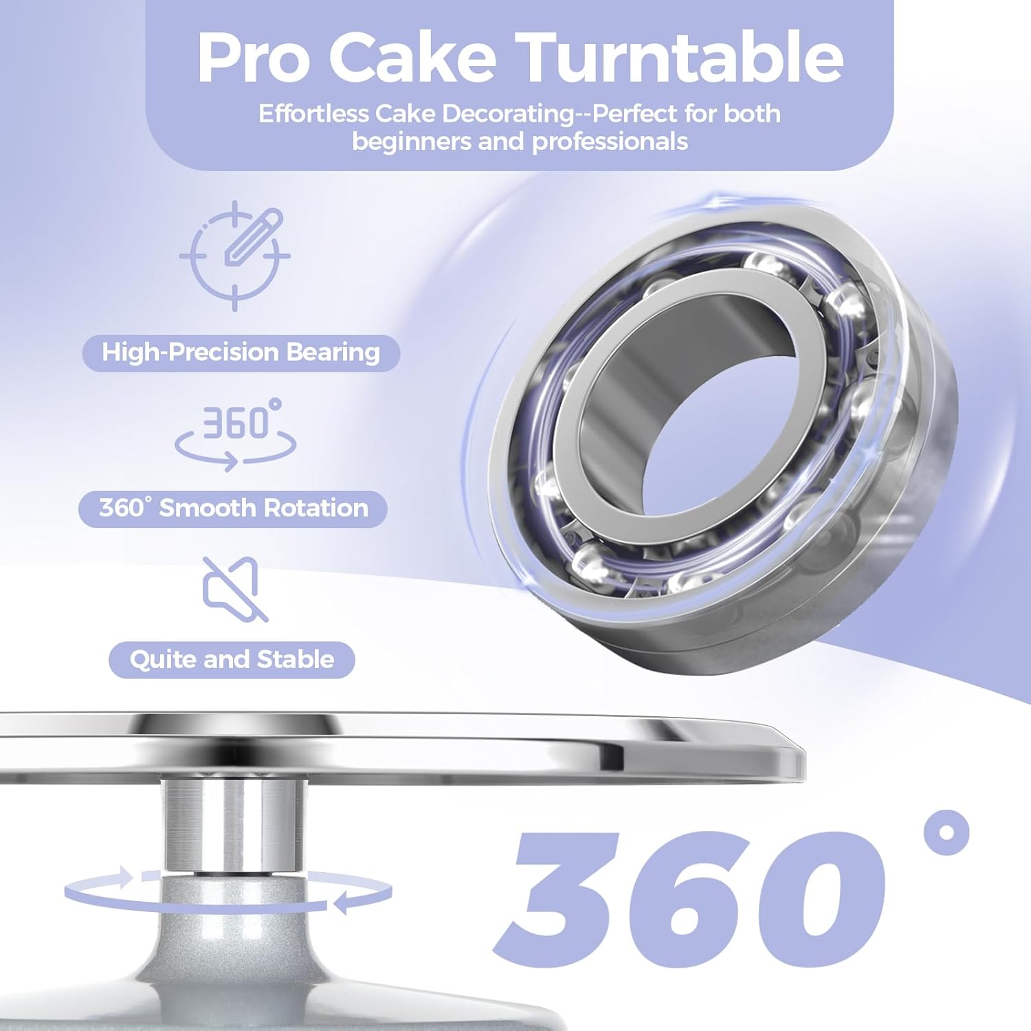 - 360Β° SMOOTH TWO-WAY ROTATING STAND: Whether you're a left-hander or right-hander, this cake decorating supplies works for everyone, as it can be turned both clockwise and counterclockwise. Thanks to the stainless steel bearing, it'll eliminate horrible friction sound and provide silky-smooth revolving each and every time.