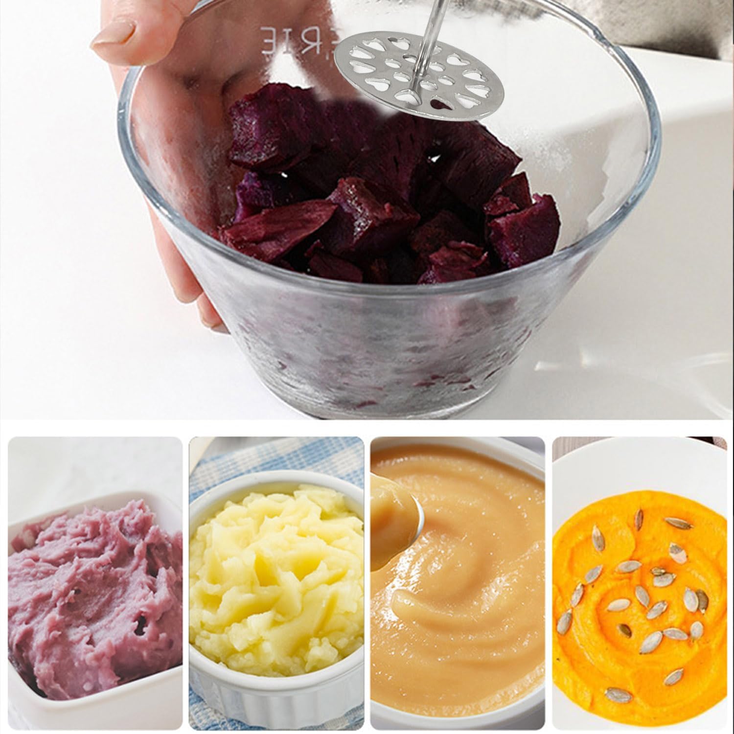 - Versatile masher: It's called a potato masher, but it can do much more than just that. This stainless-steel masher can mash beans, eggs, and just about any fruit or vegetable you desire.