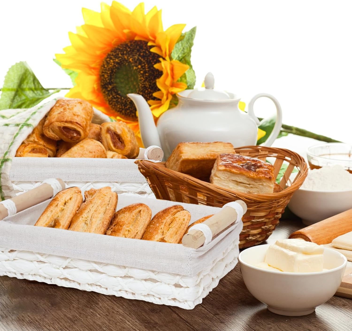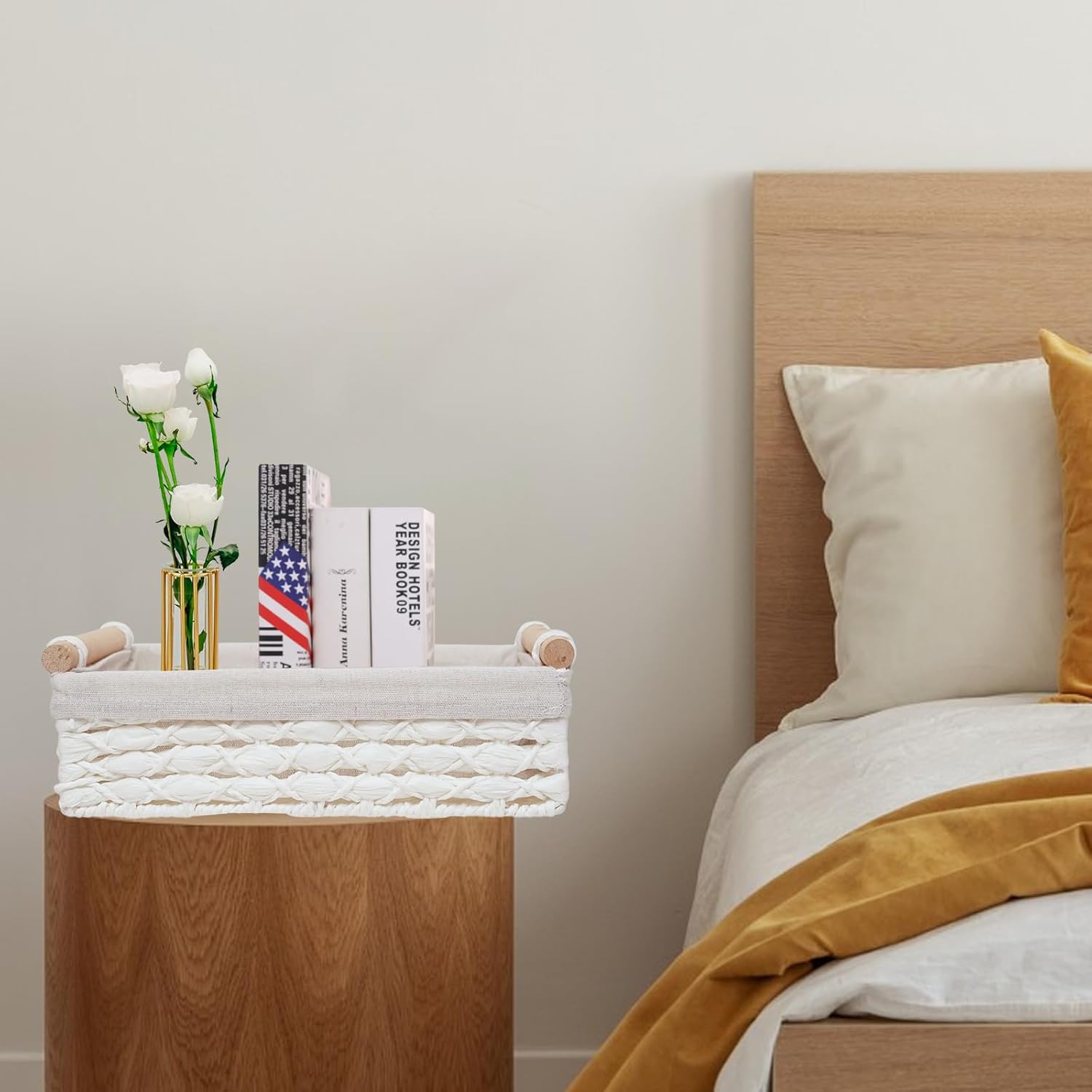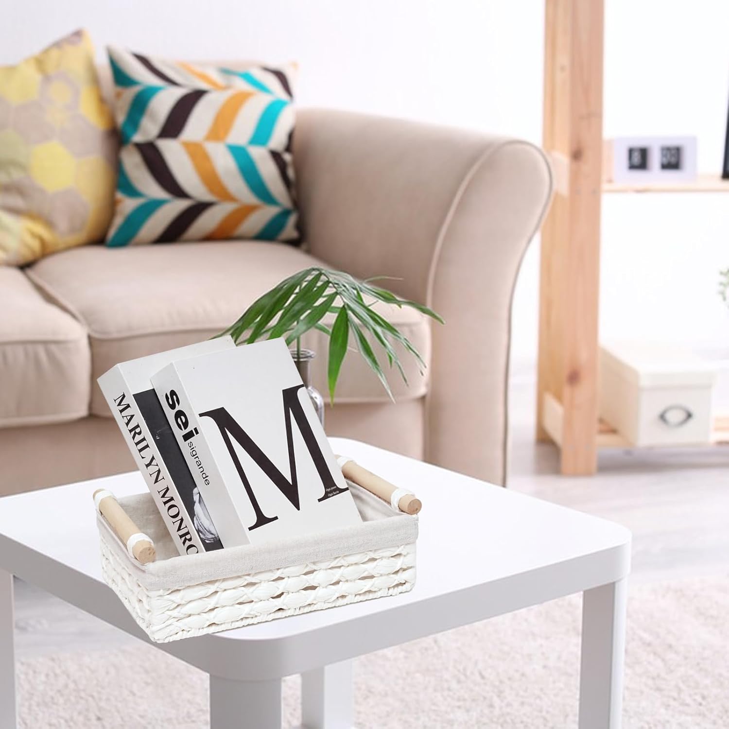 Storage Basket Wicker Baskets for Organizing with Handle Decorative Storage Bins for Countertop Toilet Paper Storage Basket for Toilet Tank Top Small Baskets Set (Set of 2,White)