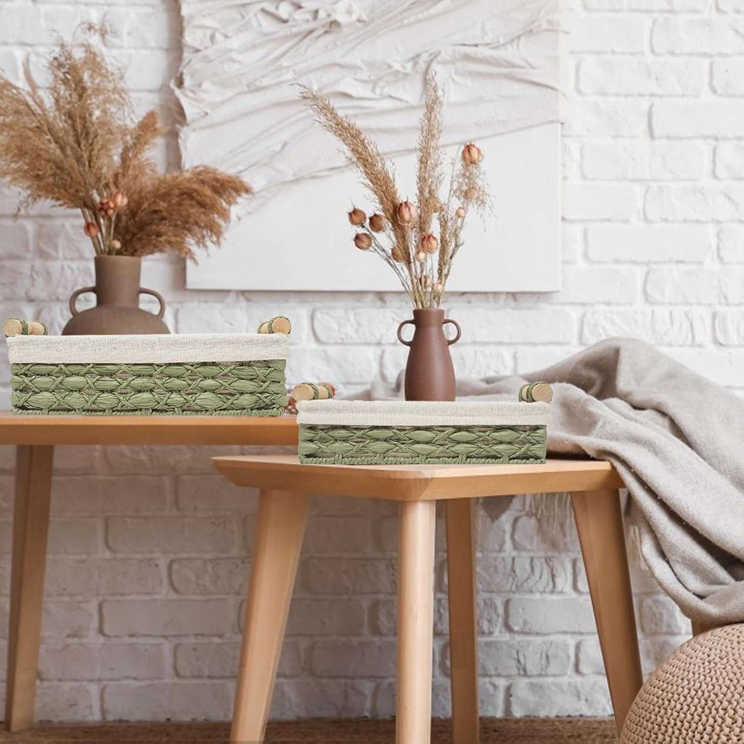 Storage Basket Wicker Baskets for Organizing with Handle Decorative Storage Bins for Countertop Toilet Paper Storage Basket for Toilet Tank Top Small Baskets Set (Set of 2,Green)