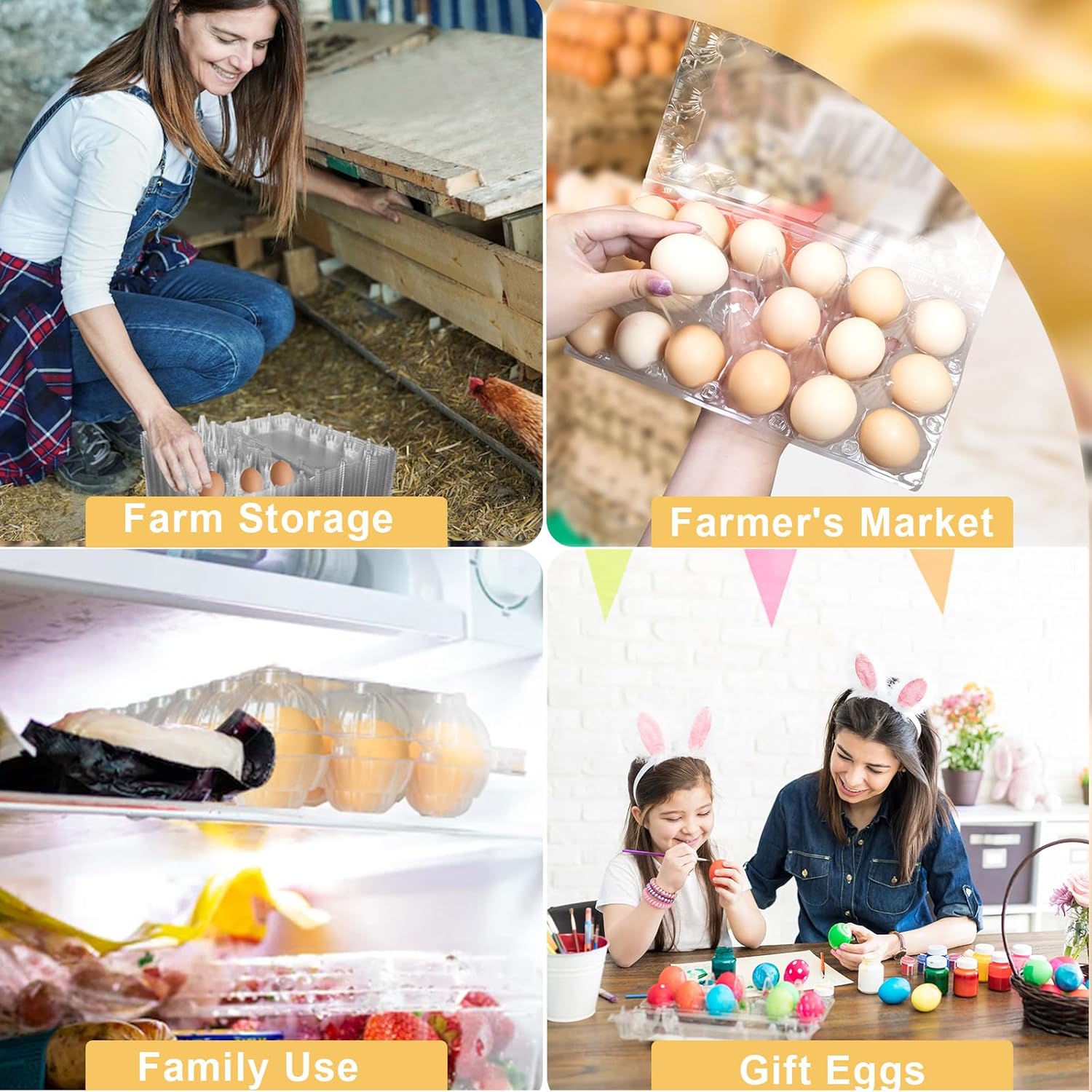 - Easy to view: Our plastic egg cartons are made of clear, thickened PET. This clear design allows you or your customers to inspect the eggs at any time, thus increasing your sales. Ideal for displaying eggs at farmers markets, grocery stores