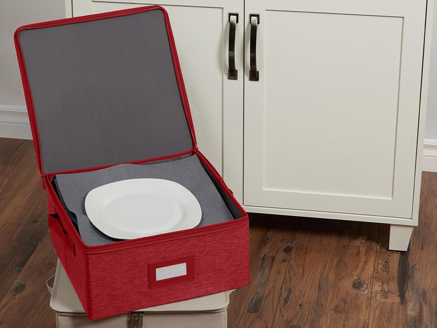 Covermates Keepsakes Dish Storage Box - Stackable, Reinforced Handles, China Storage, Red Heather