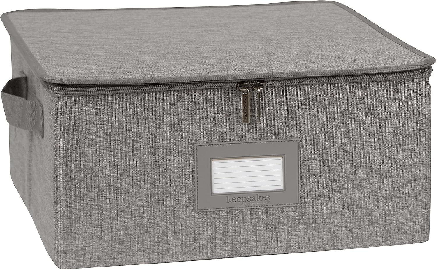 Covermates Keepsakes Dish Storage Box - Stackable, Reinforced Handles, China Storage, Grey Heather
