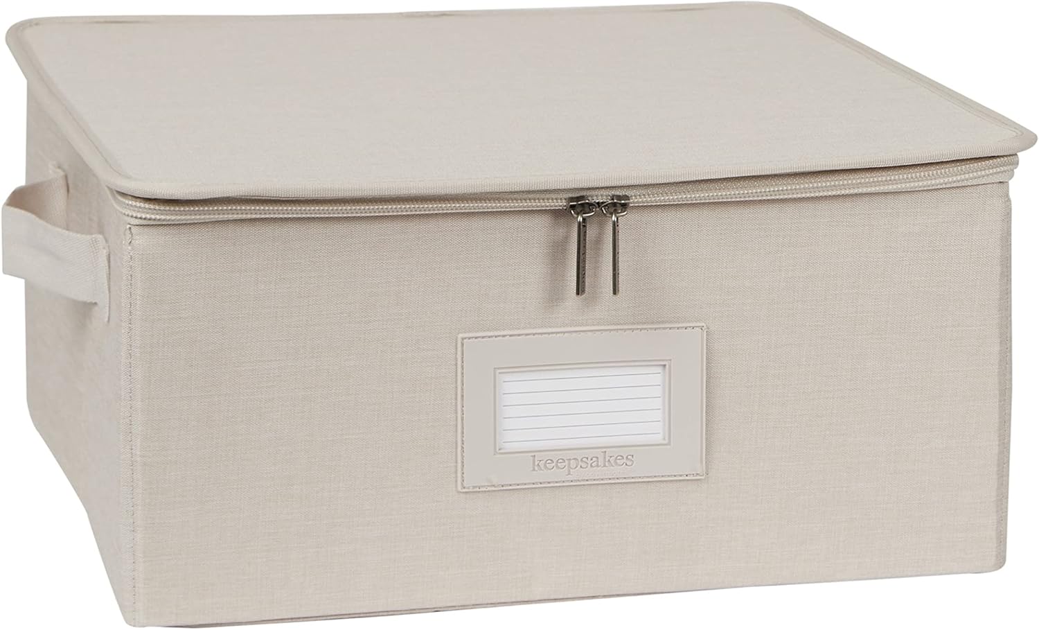 Covermates Keepsakes Dish Storage Box - Stackable, Reinforced Handles, China Storage, Beige Heather