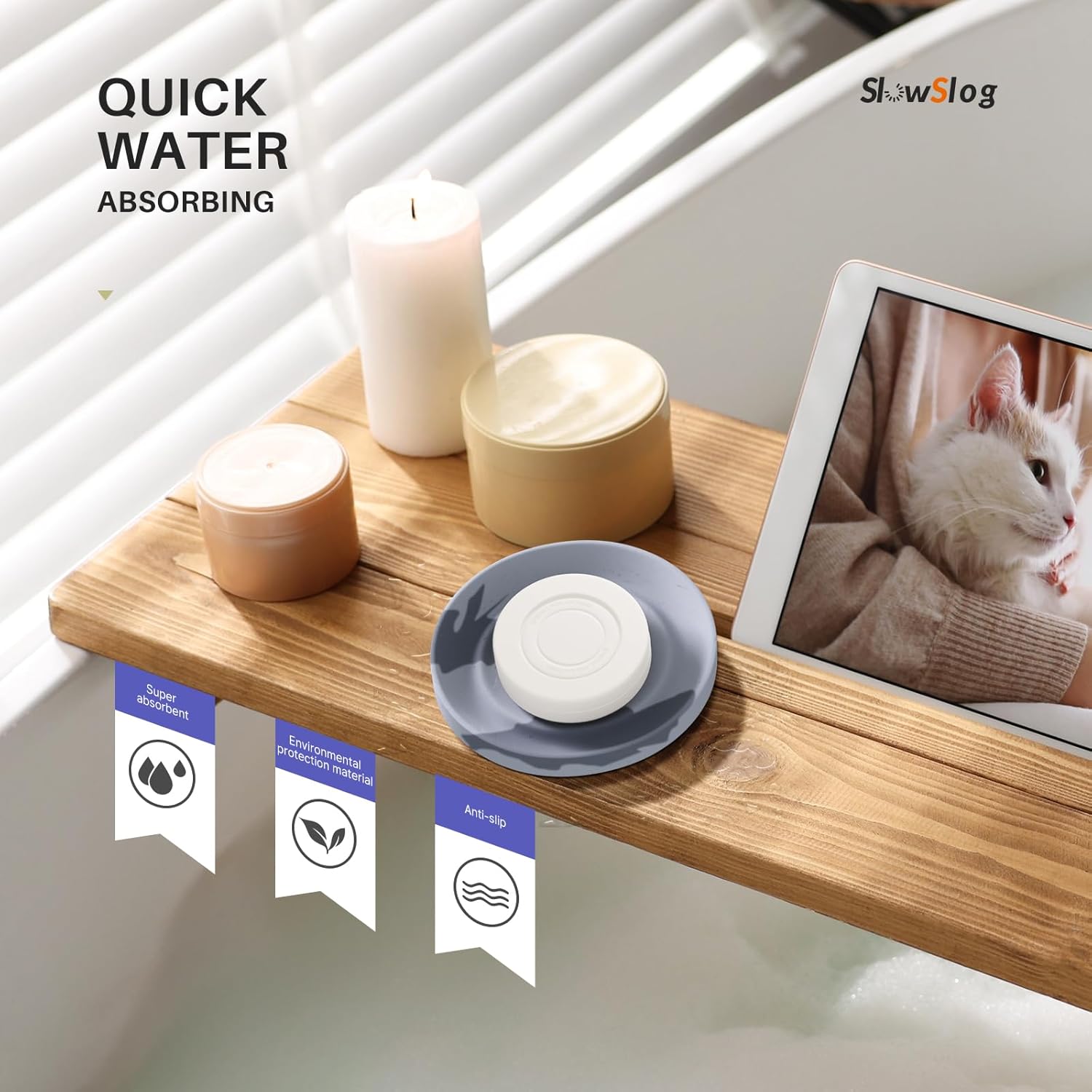 - Super Absorbent:Diatomite Soap Dish is made from natural diatom mud and plant fiber without awful smell, stone soap dish has millions of tiny absorbent pores, so soap dish absorbs water within minutes and dry quickly