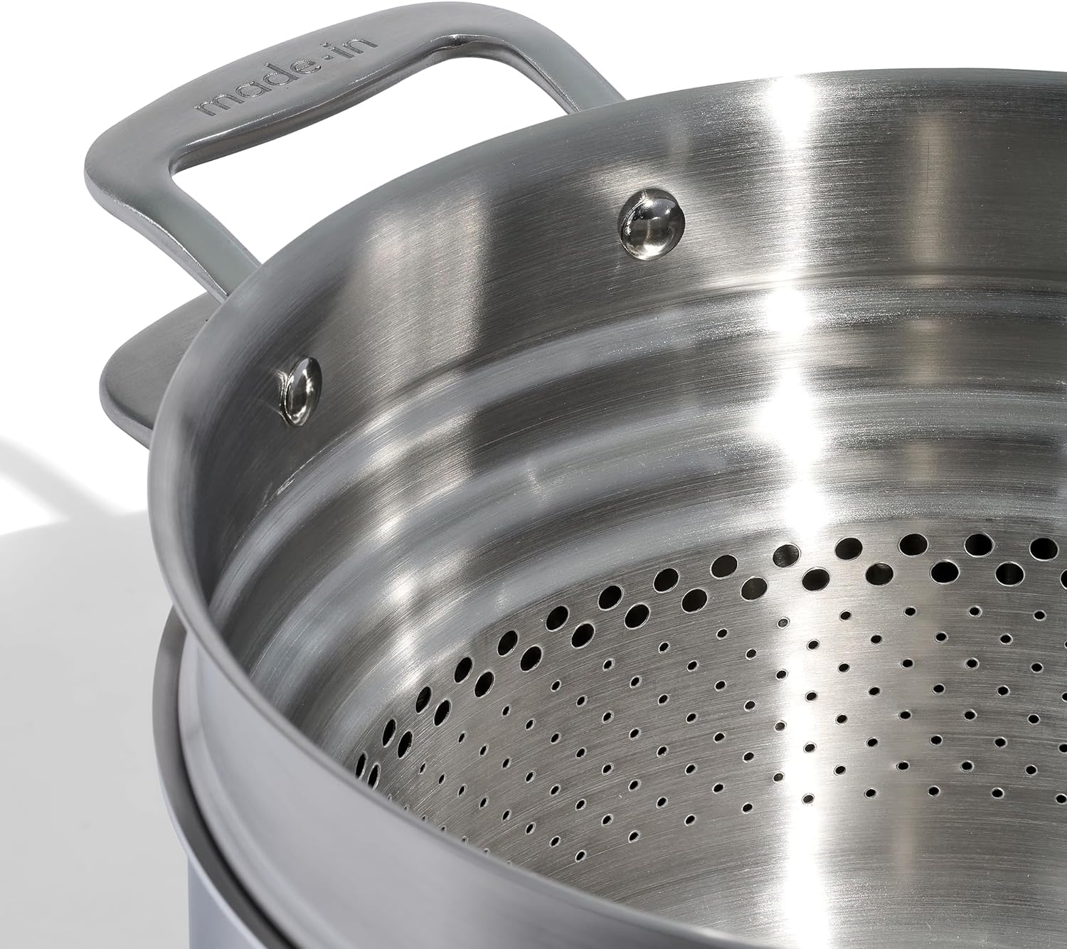 Made In Cookware - 8 Quart Stainless Steel Stock Pot With Lid and Pasta Insert - 5 Ply Stainless Clad - Professional Cookware - Crafted in Italy - Induction Compatible
