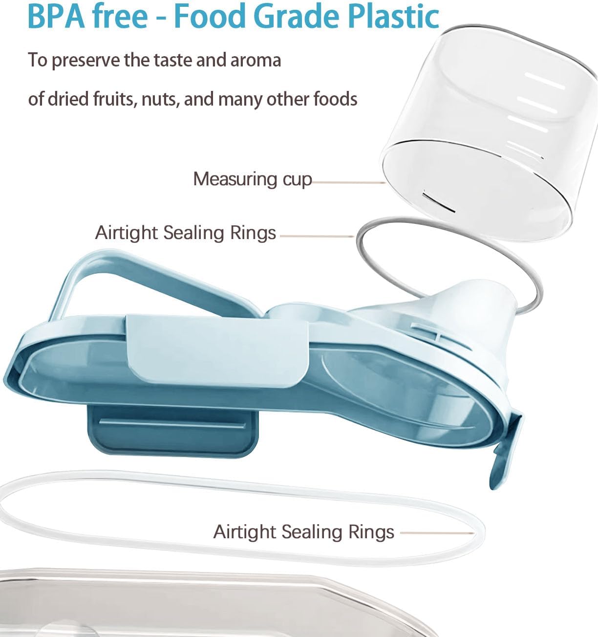 - 【BPA Free and Food Grade Material】 You won't have to worry about the health of your family, as this food storage container is made of BPA-free plastic. Cereal containers storage is durable and reusable with a long lifetime. Clear containers make it convenient to see what’s inside, you can easily and quickly get what you want without opening every container.