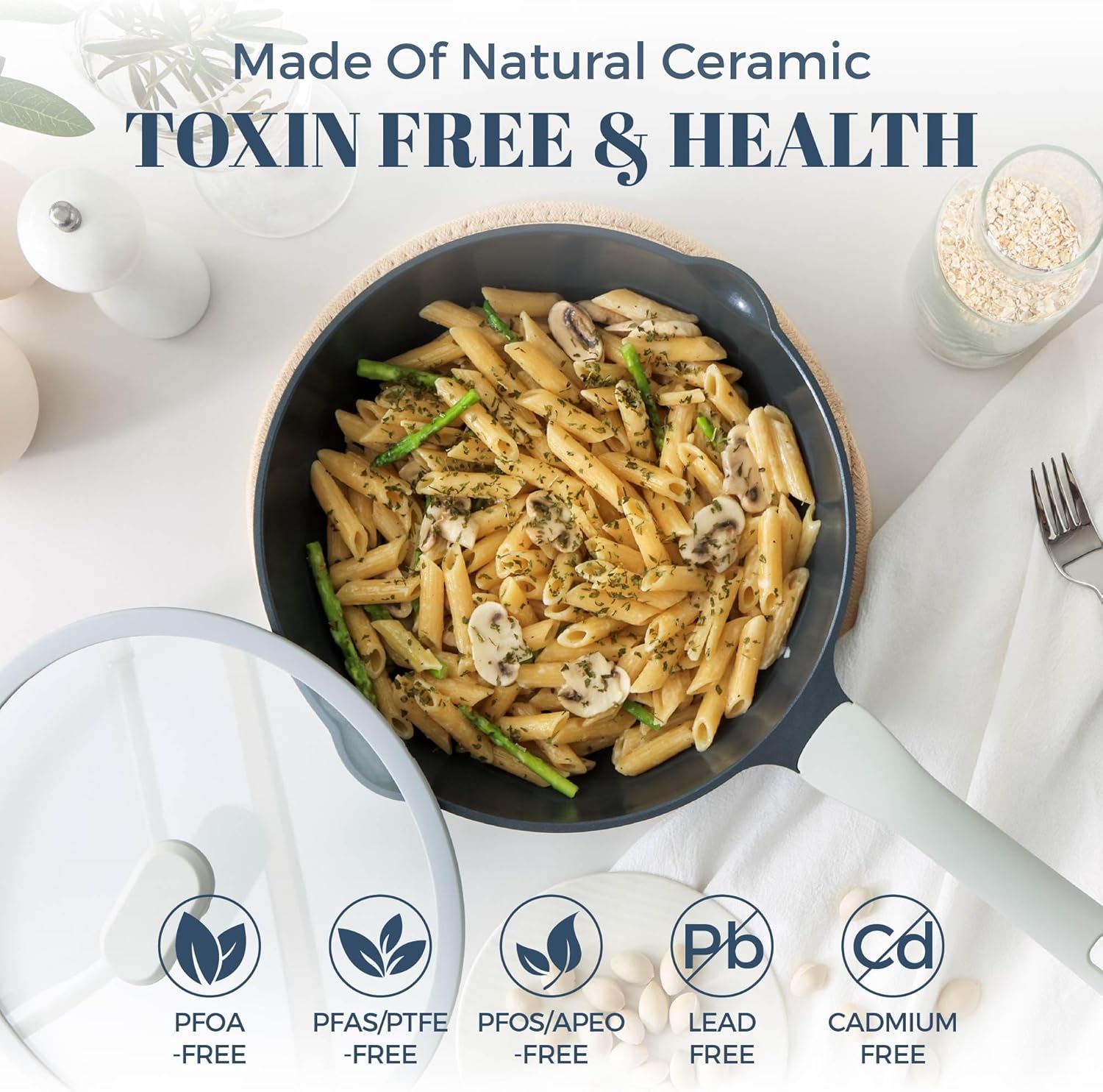 - NON-TOXIC NATURAL CERAMIC: Free from PFAS, PFOA, lead, and cadmium, our deep saute pan is safe for everyday use—so you can cook clean, live clean, and feel good about what you eat