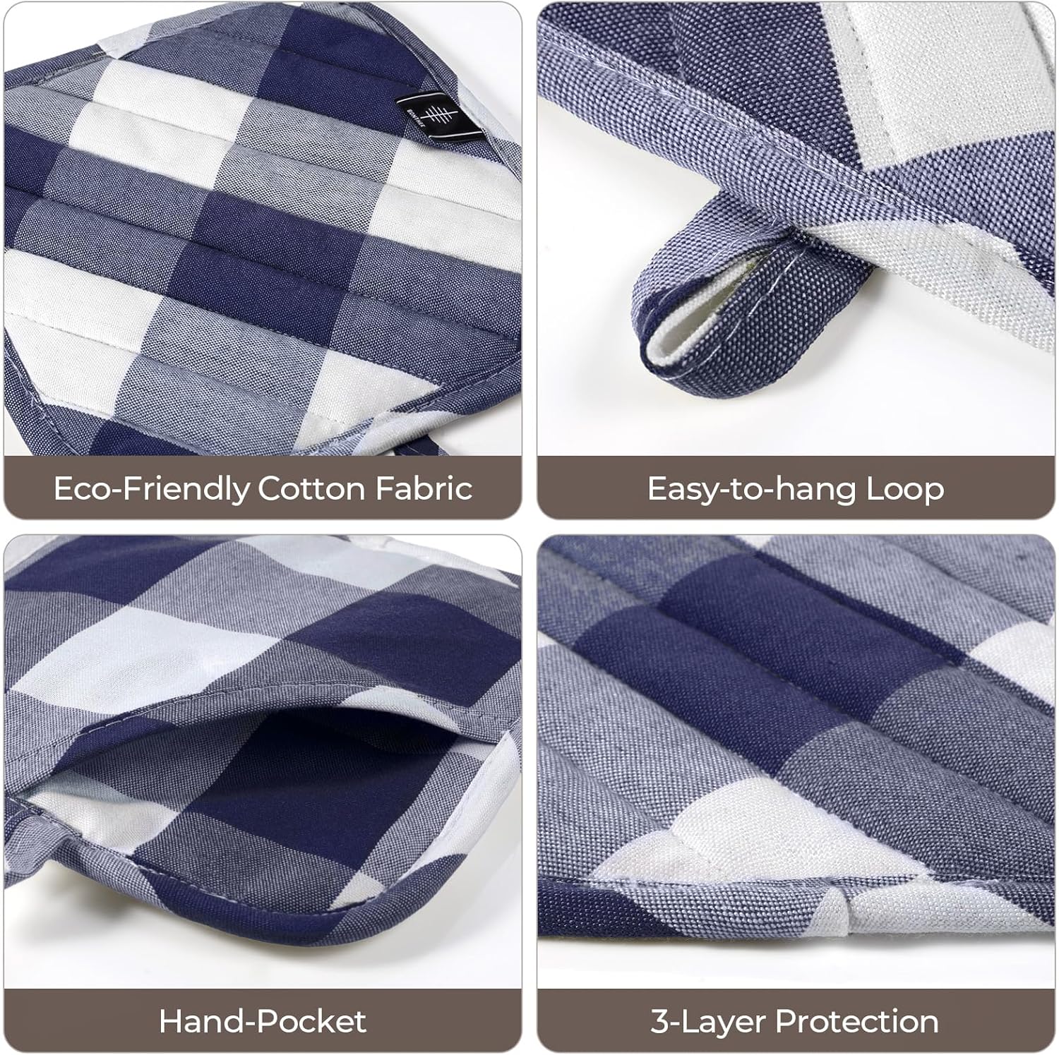 Cotton Pot Holders for Kitchen Heat Resistant Potholder, Hot Pads, Trivet Coaster Non-Slip Potholders Set for Cooking and Baking (2, Blue Plaid, Square,8.27 in²)