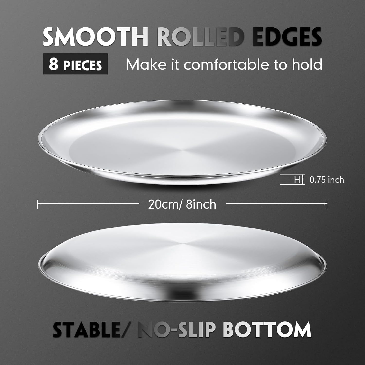 - Detailed Size: camping stainless steel plates measure approx. 20 cm/ 8inches in diameter, 1.9 cm/ 0.75 inches in height, lightweight and stackable, which are suitable for cookies, pie, corn bread and pizza in oven, and fit for most toaster ovens, simple and convenient to place or store with saving space