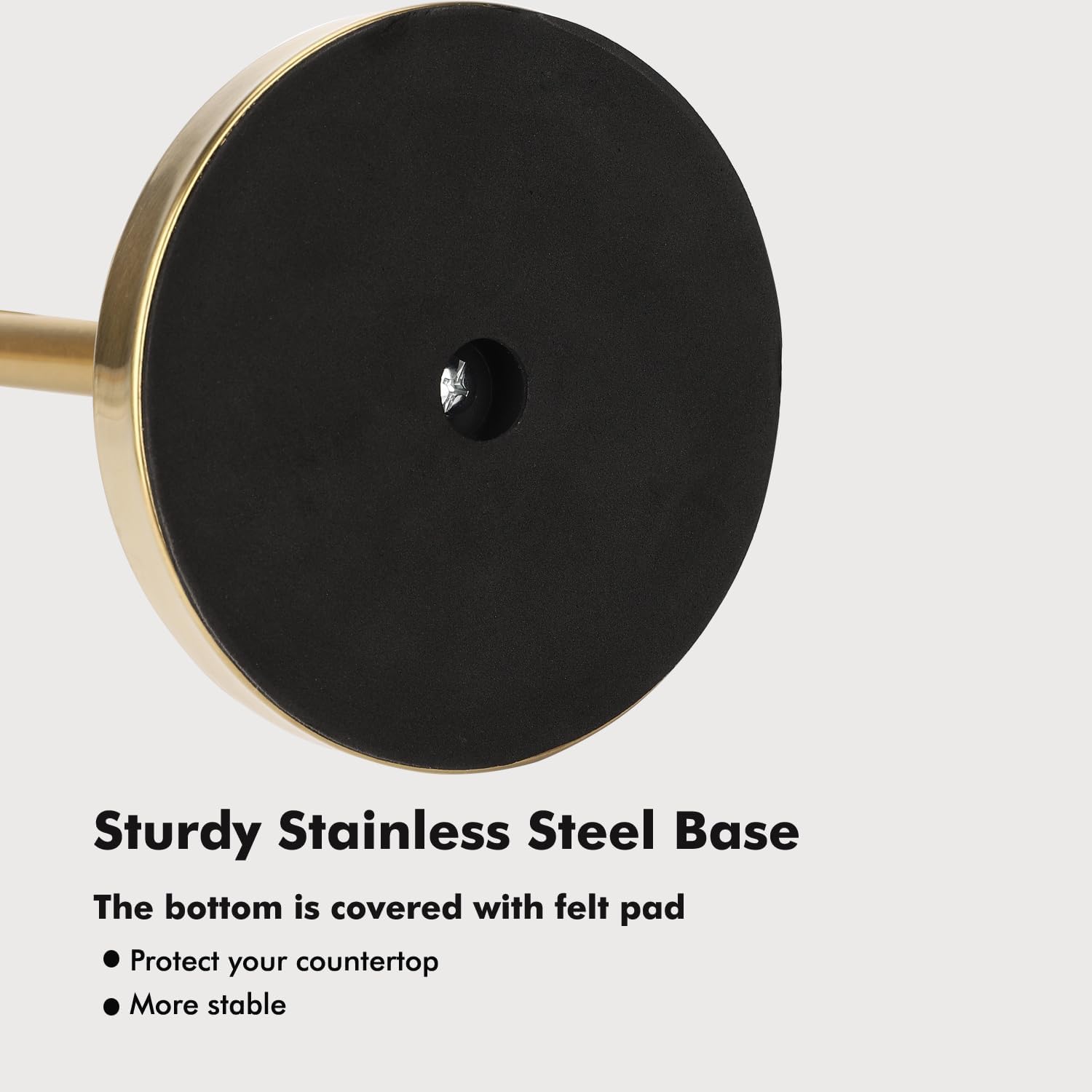 - Base bottom is covered with felt pad, ensuring no scratching to countertop, and keeping extra stability of base.