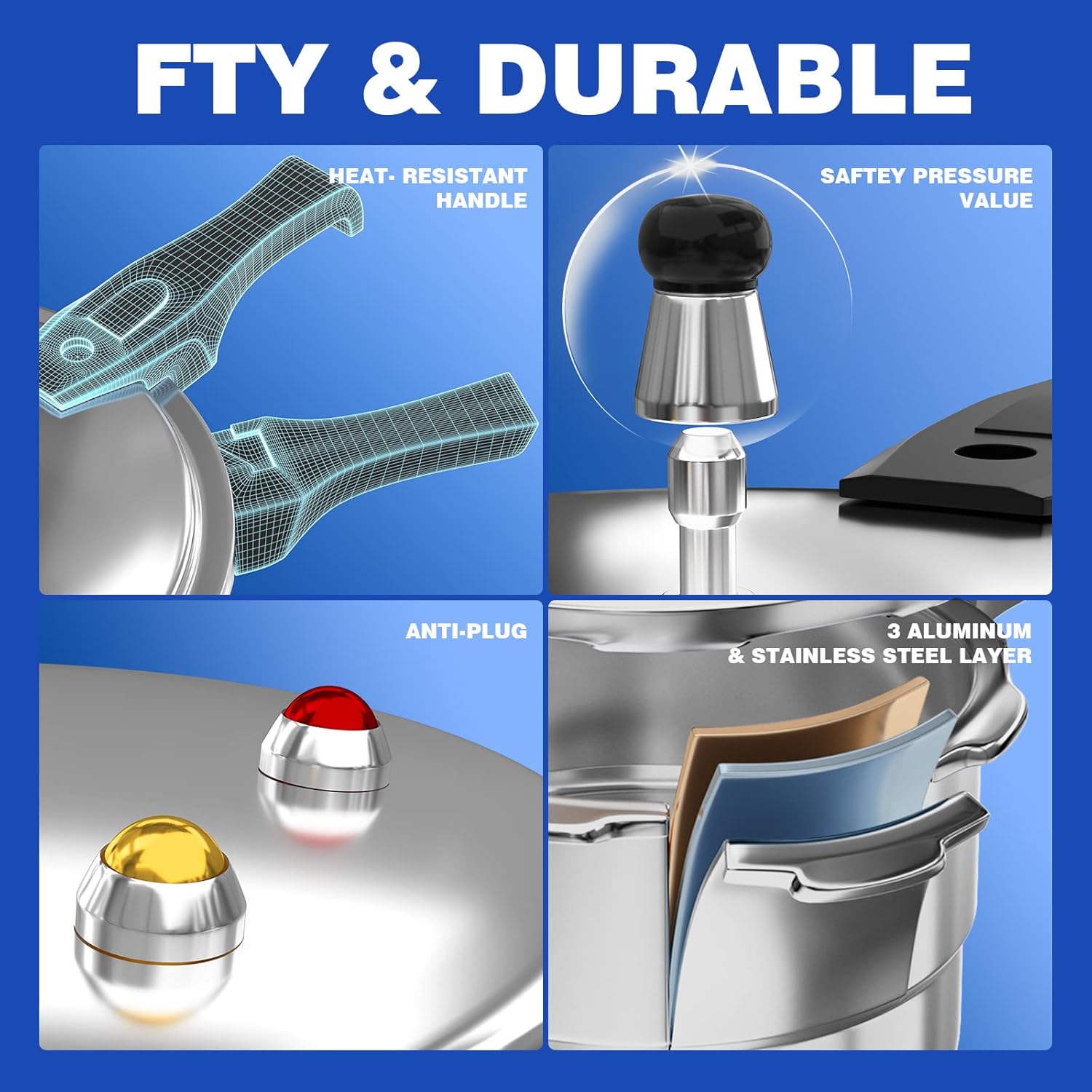 - MULTIPLE SAFEGUARD DEVICES: The WantJoin aluminum pressure cooker features 8 safety features, acting as a fully armed bodyguard for your cooking. It includes a self-locking valve, limit valve, anti-blocking lid, safety valve, pressure release window, and more. Cook with peace of mind!
