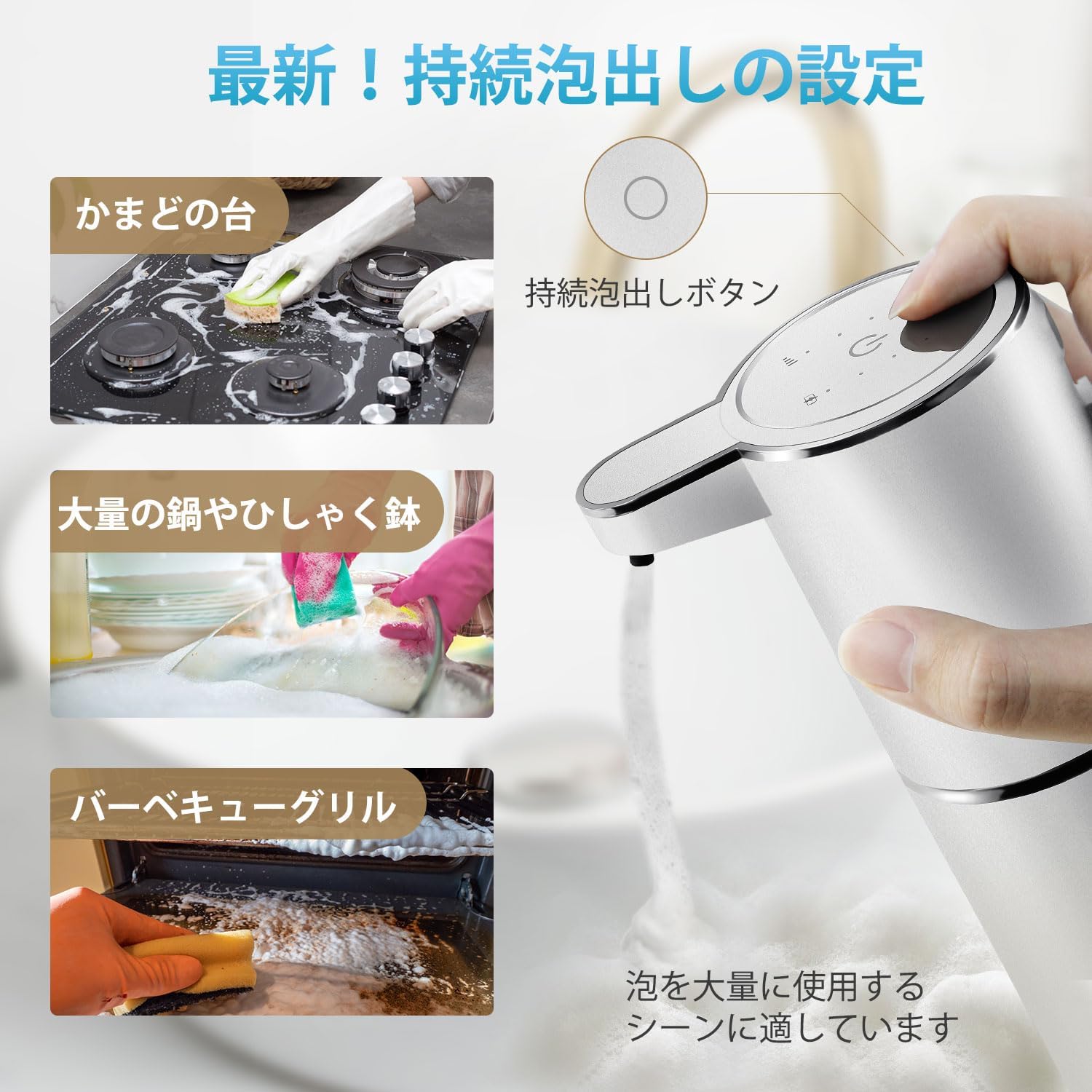 Automatic Foaming Soap Dispenser with 4 Adjustable Control Rechargeable Hands Free Auto Soap Dispenser for Kitchen, Bathroom, Hotel, Restaurant,Touchless 380ml